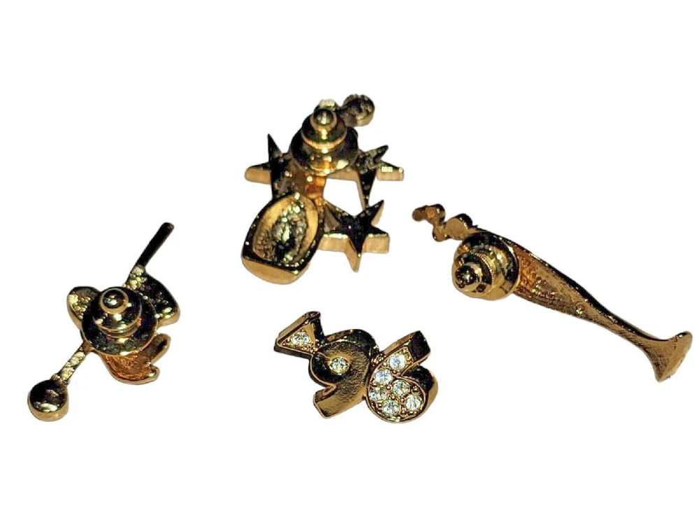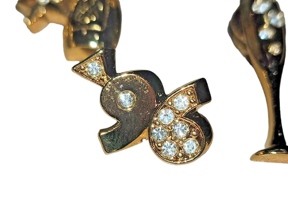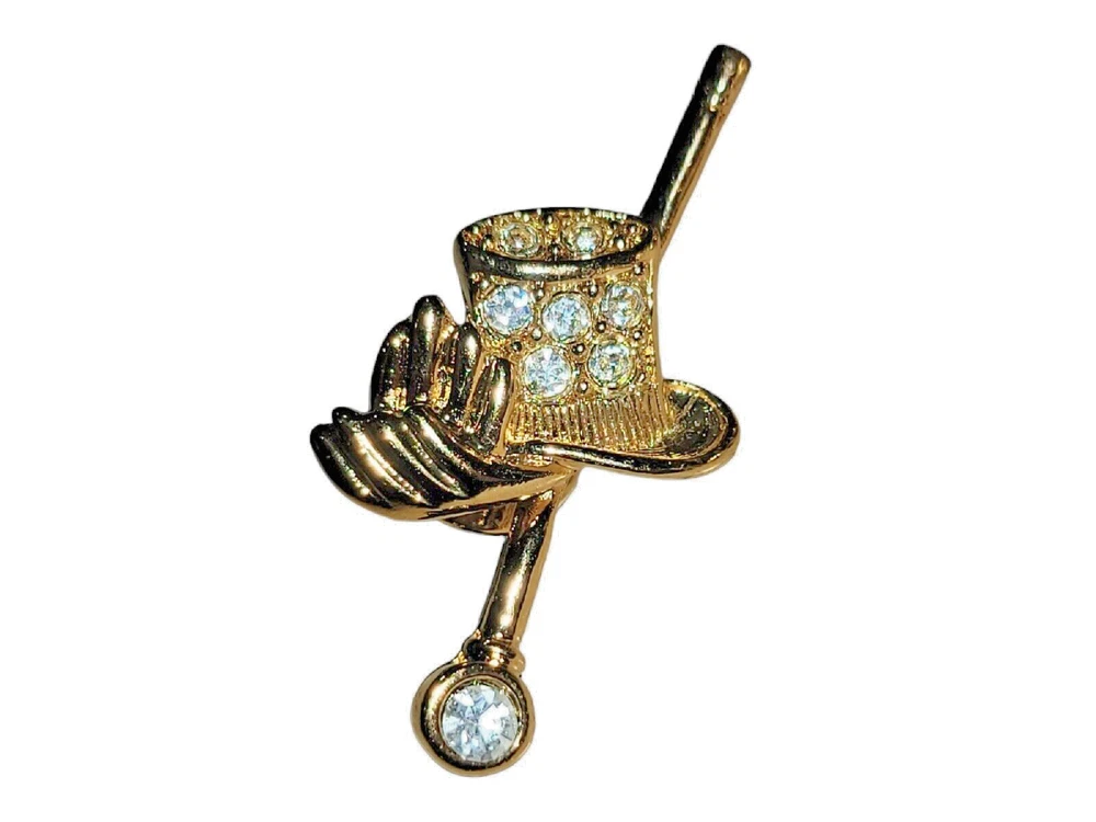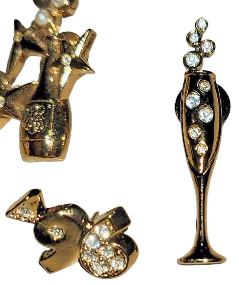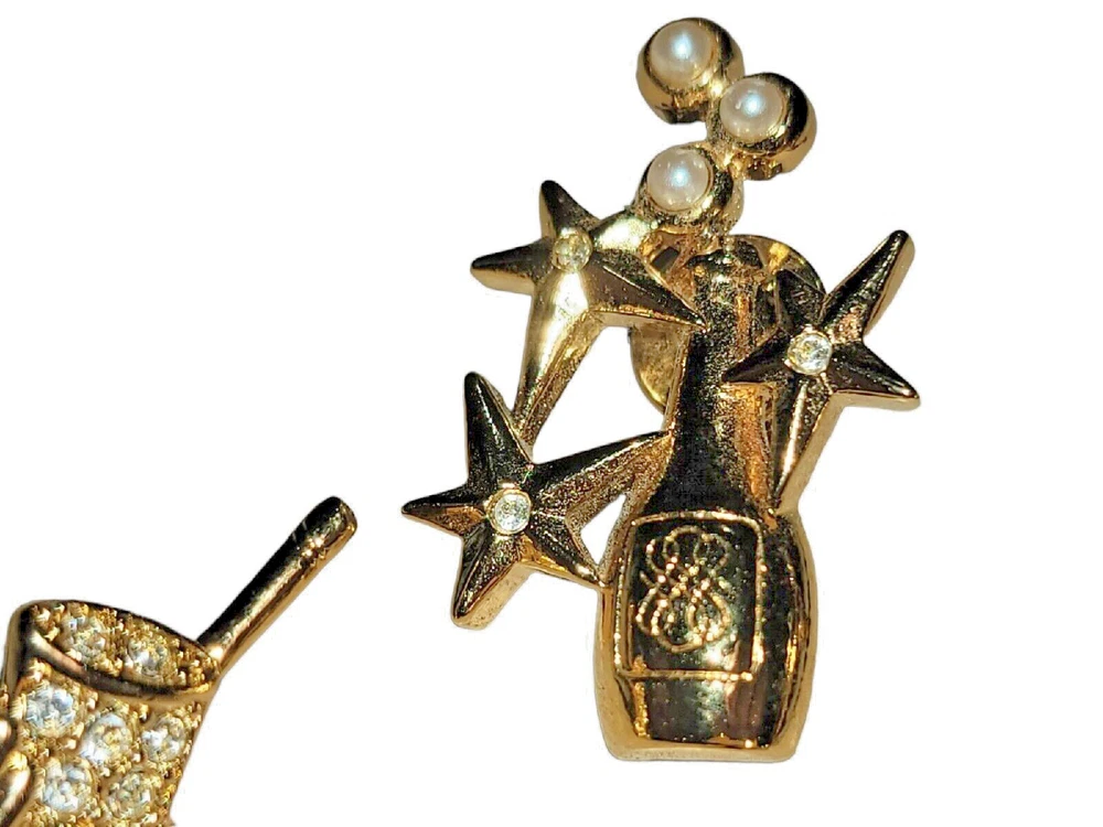 Avon New Years Holiday Pin Brooch Lot Champagne Rhinestone Gold Tone Top Hat. Nice shape! Just missing the back on the 96 pin. See pictures!