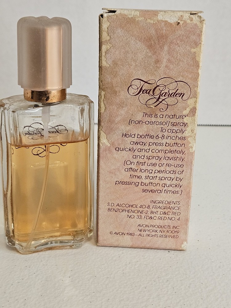 This Vintage Avon Tea Garden Cologne Spray is a charming addition to any perfume collection. It comes in a 2 fl. oz. bottle from 1983 and even includes the original box. The fragrance is reminiscent of a lovely afternoon tea with notes of jasmine, rose, and green tea. Bottle Appears To Be 90% Full Due to Evaporation