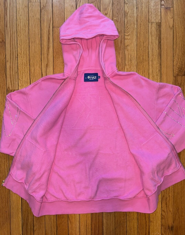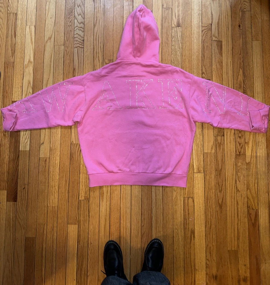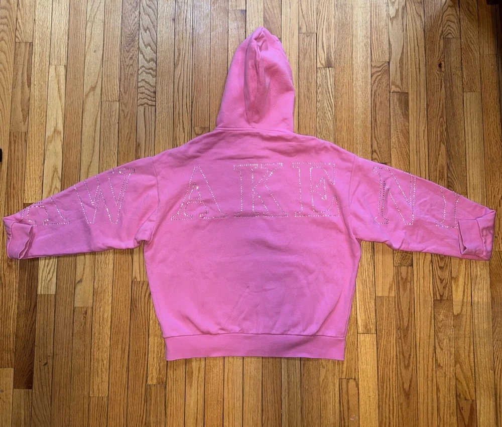 Awake NY Hot Pink Rhinestone Zip Up Hoodie with Sparkle Detail
