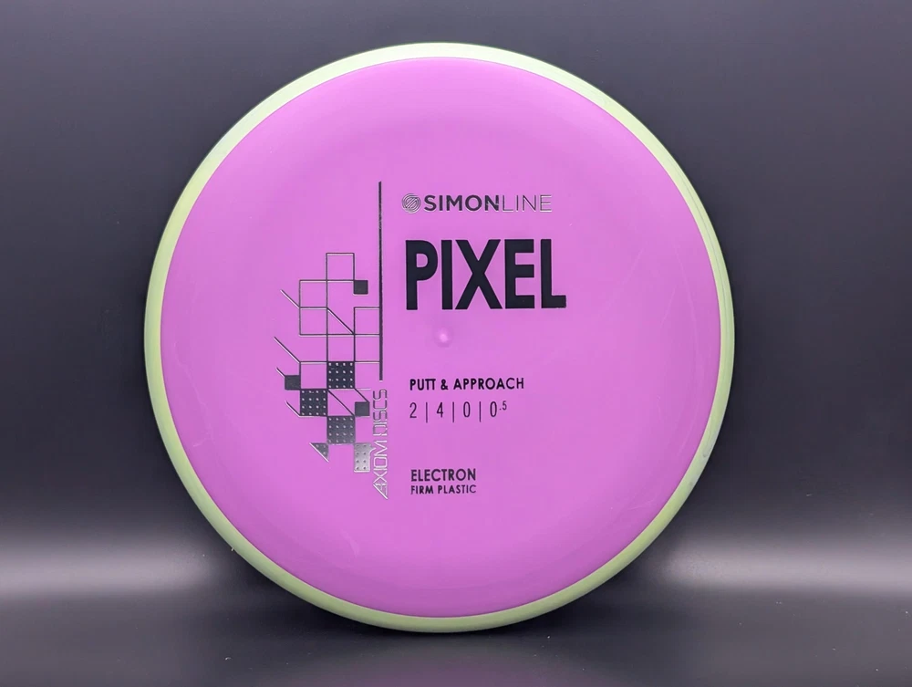 Speed 2 | Glide 4 | Turn 0 | Fade .5 The second disc in the Simon Line is officially here, the Electron Pixel! Debuting with flight numbers of 2 | 4 | 0 | 0.5, the Pixel has a deep profile with a small micro bead, perfect for getting that full grip feeling. Off the tee, the Pixel is a straight/stable flier and will reliably hold any line it's thrown on with a minimal amount of fade back. However, don't let the low speed fool you - the Pixel can certainly go the distance, especially with the right wind conditions. On the putting green, whether you're in C1 or C2, the Pixel shines with the right amount of glide to carry right into the chains. The disc pictured when you select a variation is the disc you will receive! Shipped in a bubble mailer for protection.