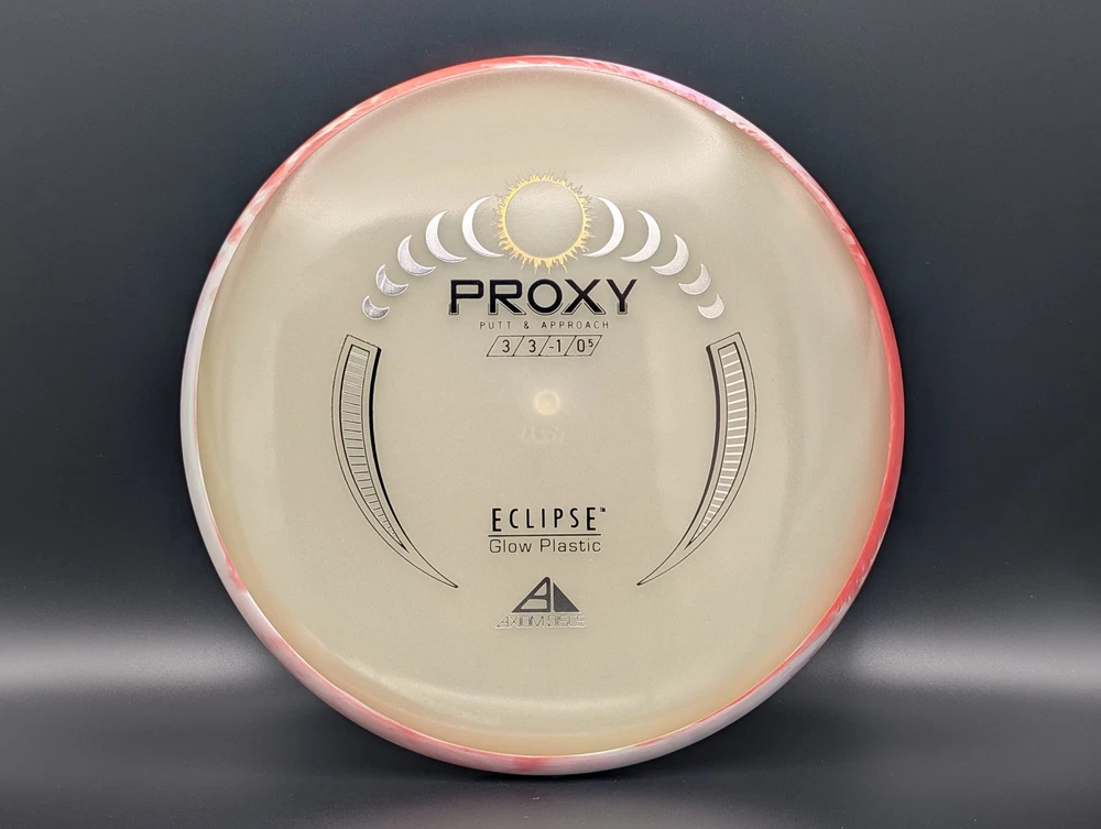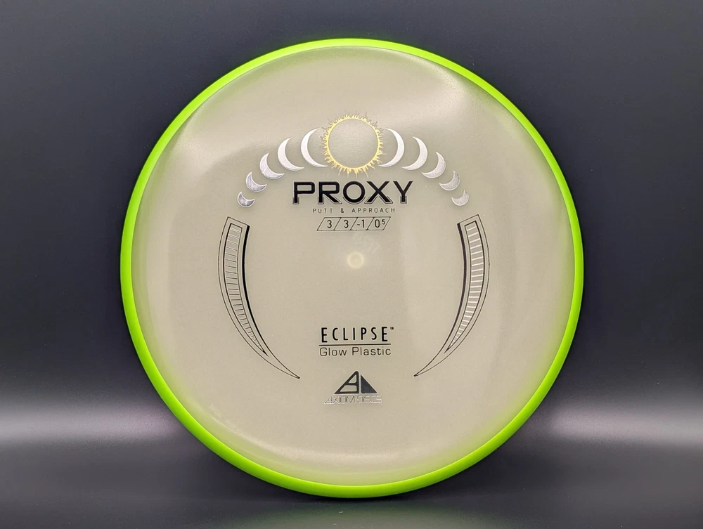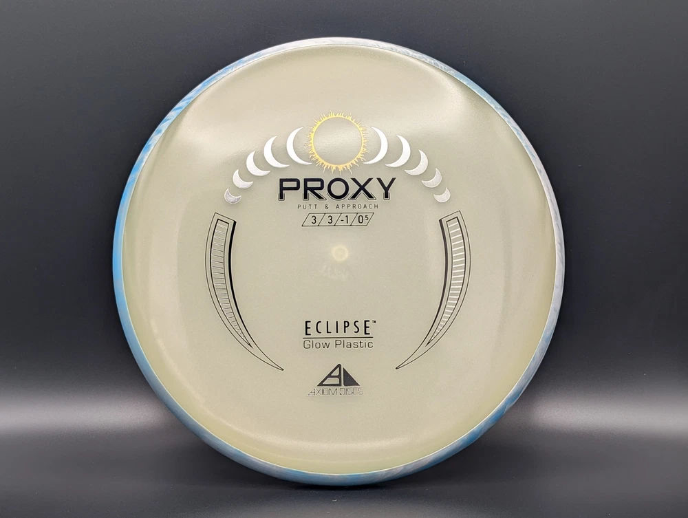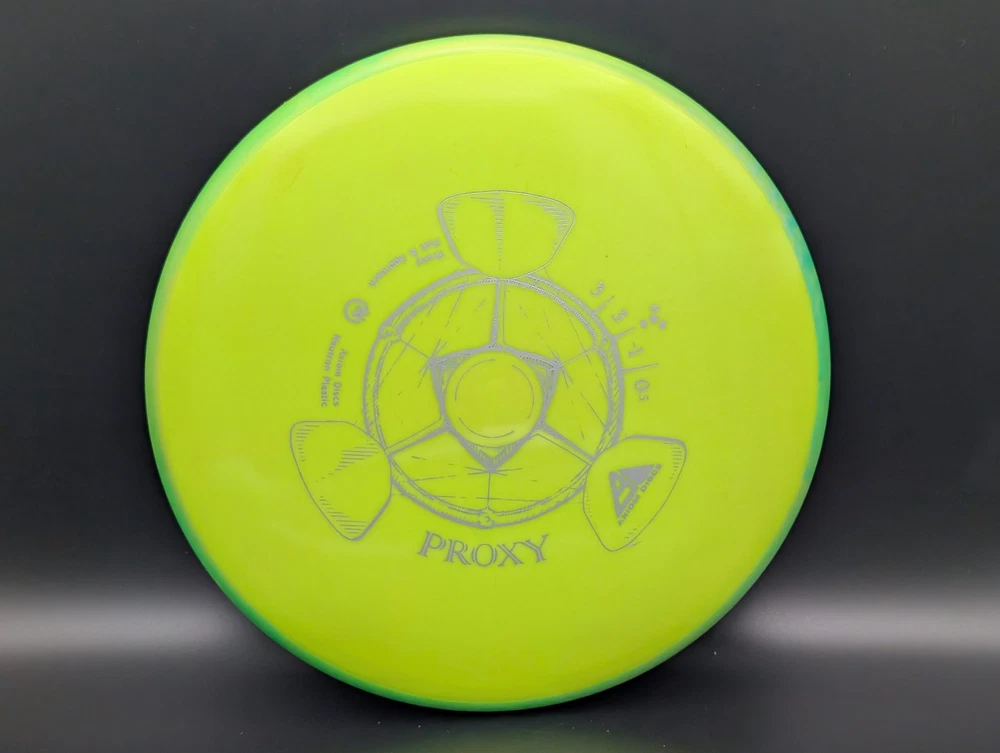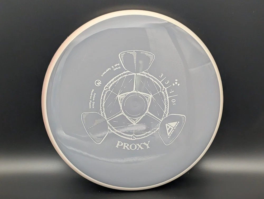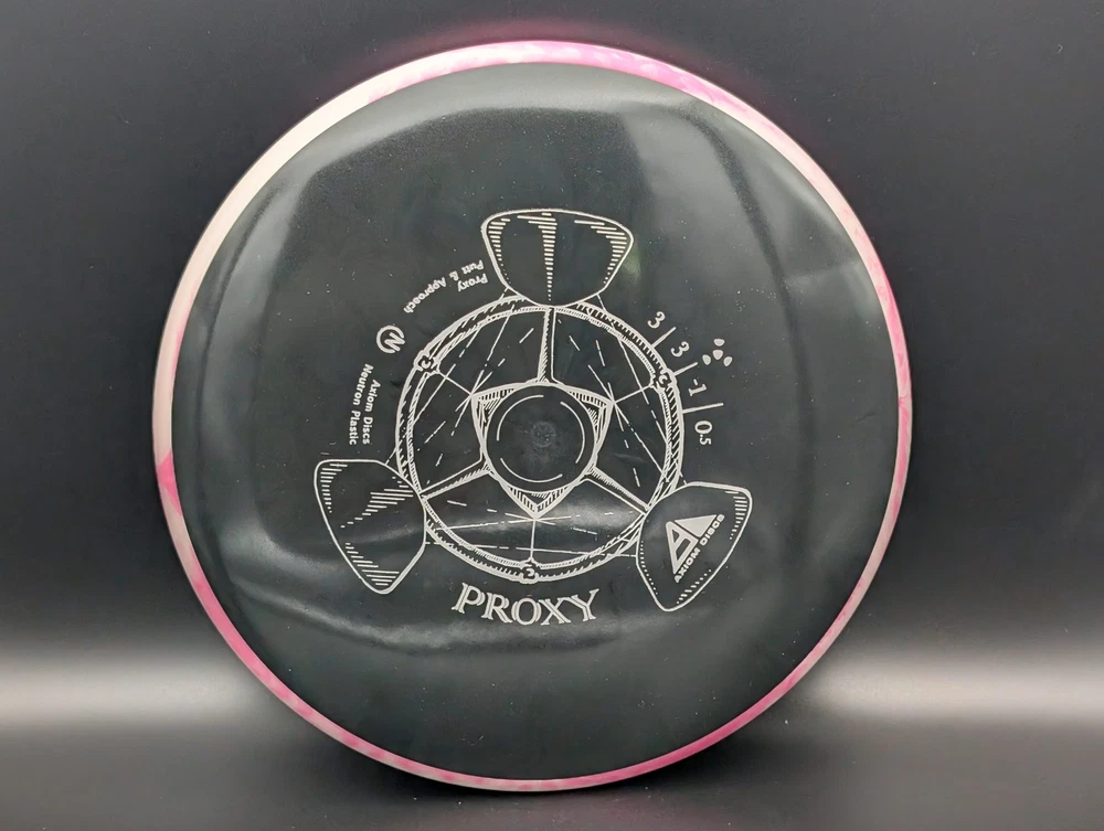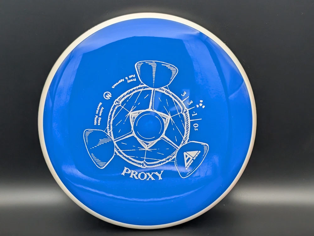 Speed 3 | Glide 3 | Turn -1 | Fade .5 The Proxy shares the Envy mold's core, lending the same low-profile feel and solid grip, along with a short wing width and wide flight plate diameter for superior glide. The Proxy sets itself apart from the Envy with a remarkably straight forward-fading finish. A bit of high-speed turn potential allows the Proxy's lines to be manipulated over a broad range of power and helps less powerful throwers achieve straight putter drives. The disc pictured when you select a variation is the disc you will receive! Shipped in a bubble mailer for protection.