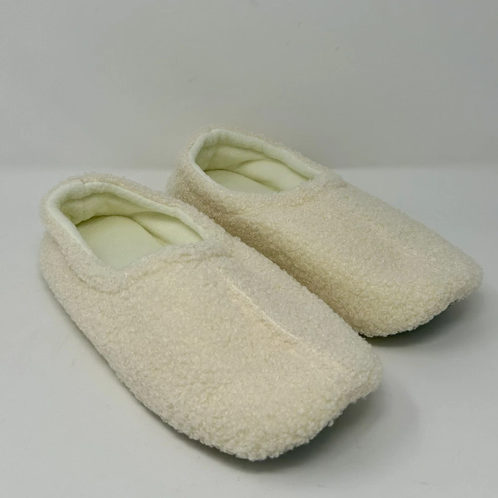 New in Original Box - These cozy slippers are warm and soft, padded with a rubber outer sole so they are durable and can been worn indoors or out. They were NEW in the sealed box but we opened it to take pictures. See pics •Sizing & Caring Tip: For the perfect fit, size up if your regular shoe size falls between two sizes. Our sizes of the cozy slippers for women are listed in medium width, so adjust accordingly for a wide or narrow fit. These memory foam slippers are convenient and easy to maintain with machine washability. Wash cold on gentle cycle, no bleach, lay flat to dry in shade, avoid soaking and scrubbing. •Memory Foam Footbed: The ballerina slippers fits the contour of your feet and make you feel like walking on the soft pillows. Ergonomically designed with a roomy toe box so they won’t squeeze your toes. These house slippers for women will cuddle your feet in cozy comfort after a bath, during travel or a busy office day. •Soft Furry Curly Fur Upper: Indulge your feet with the cozy feeling of hugging a cute poodle with these soft house slippers for women. They offer enhanced comfort in cold weather and are hand- and machine-washable for easy maintenance. The classic slip-on loafer shoe design makes the cozy slippers for women perfect for all-day wear at home, and they match well with your loungewear, pajamas, or robe sets. •Lightweight & Breathable: Enjoy a comfortable and airy feel with these lightweight and breathable furry memory foam slippers. They are incredibly lightweight, making them perfect for all-day wear without causing discomfort or fatigue. The 100% cotton plaid fabric on the footbed ensures breathability, preventing excessive sweating and keeping your feet dry and comfortable in all conditions. •Closed-back style: These memory foam slippers with a closed-back style provide warmth and protection for your entire foot, from heel to toe. You can relax with your feet up anywhere and not worry about them slipping off by using the ballerina slippers.