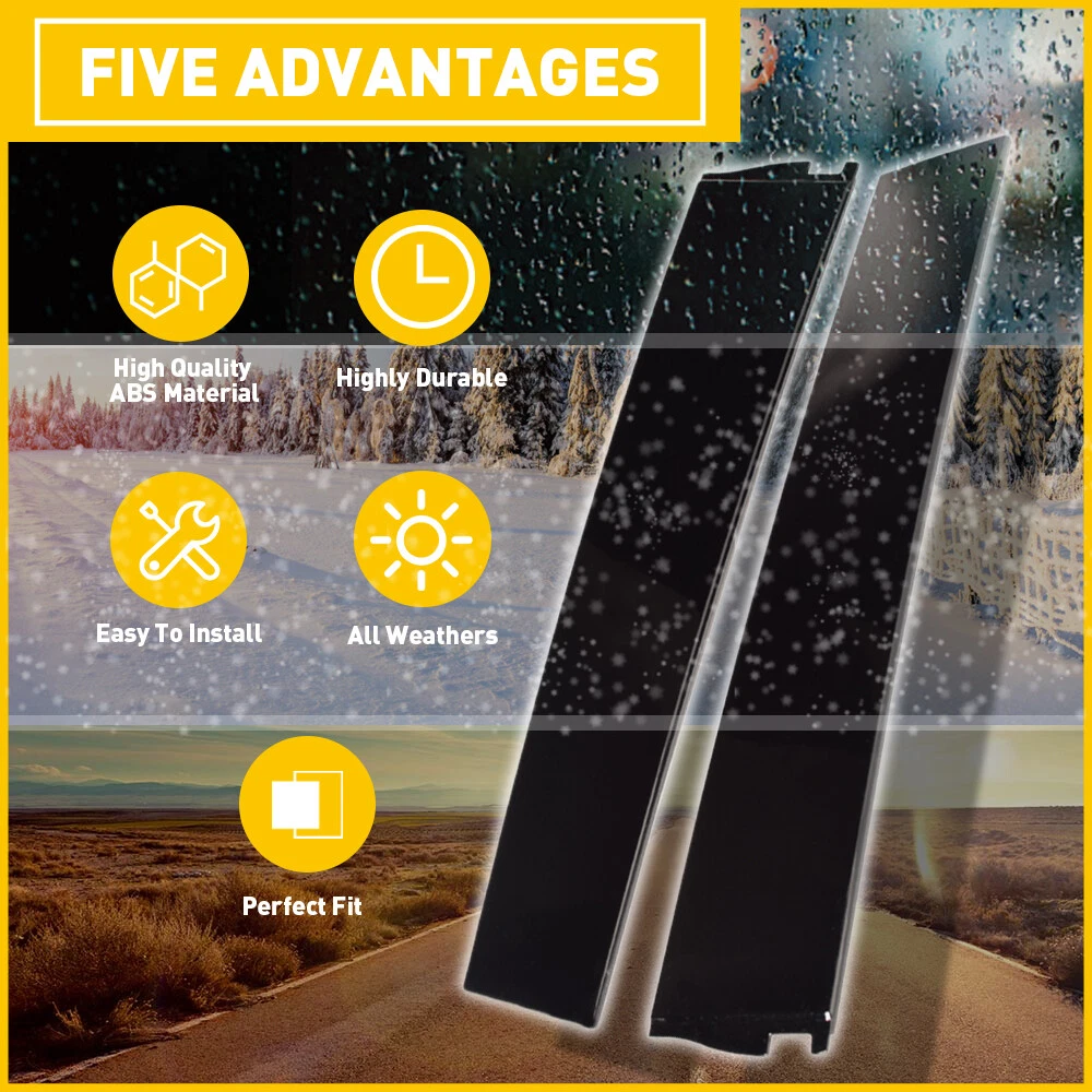 These B-pillar trims are a fantastic upgrade for any compatible SUV! The gloss black finish gives a sleek, premium look, and the ABS material feels durable. Fitment was spot-on for my Yukon—they clipped right into place like factory parts. No fading or peeling after months of use. Super easy install; just popped off the old ones and snapped these in. Really cleans up the vehicle’s appearance for such an affordable price!