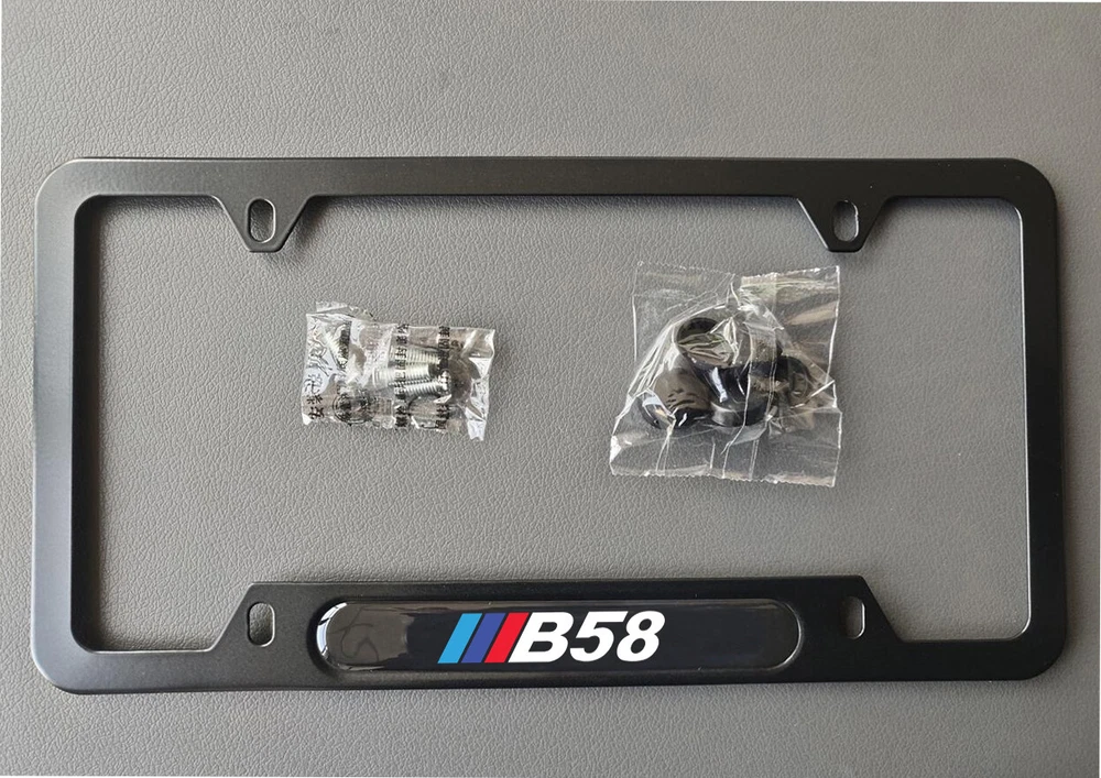 B58 License Plate Frame is made of aluminum and feature a domed full color (B58 nameplate). All license plate frames come complete with matching hardware . MATERIAL : METAL (ALUMINUM) SURFACE FINISH : SMOOTH MATTE BLACK. LOGO: 3D SMOOTH LIMITED TIME OFFER FOR BLACK FIRDAY SALE BUNDLE QTY 1 LIC PLATE FRAME QTY 1 SET TIRE VALVES QTY 1 AIR FRESHER. • We will accept return within 15 days. Please notify us within 15 days after your purchase. • Please contact us for RMA number before sending the item back. All item send back with out authorization will not be processed. • Buyer pays for all return shipping fees