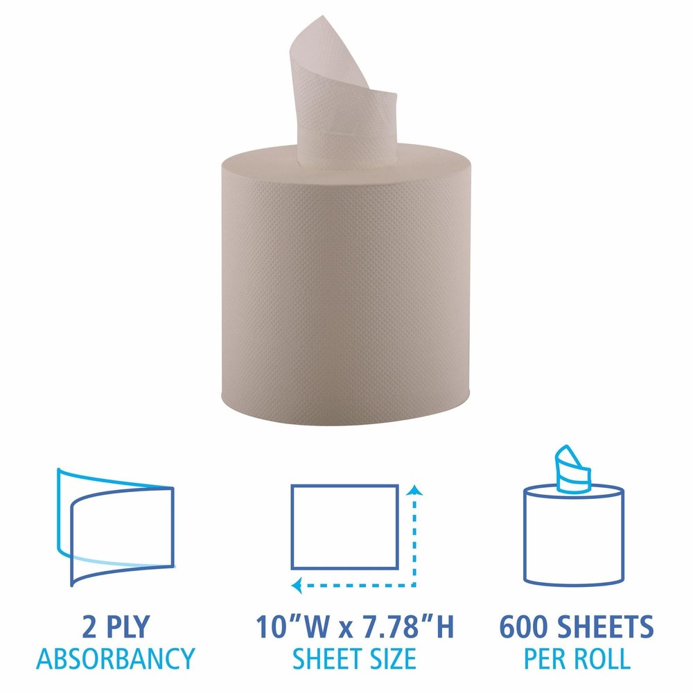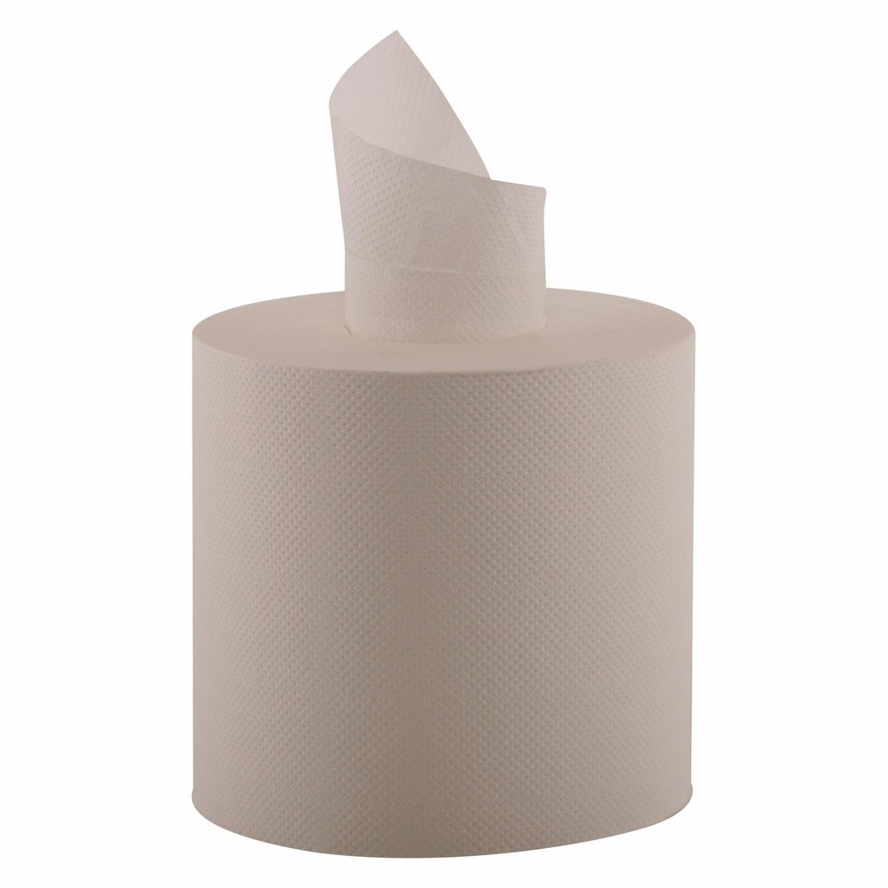 Strong, easy to grab material. Durable and absorbent. Core must be removed before use. Great for hand-washing in public restrooms.