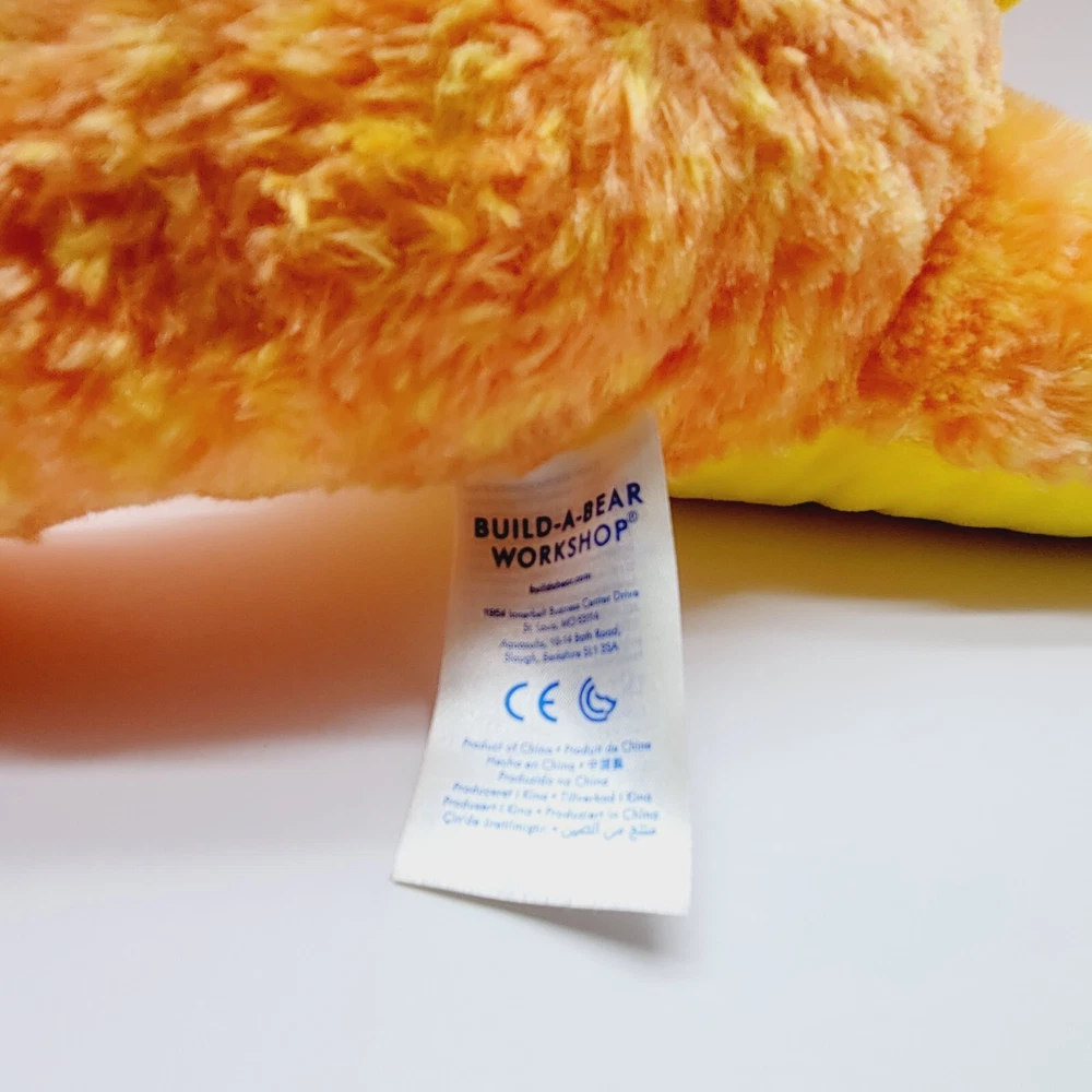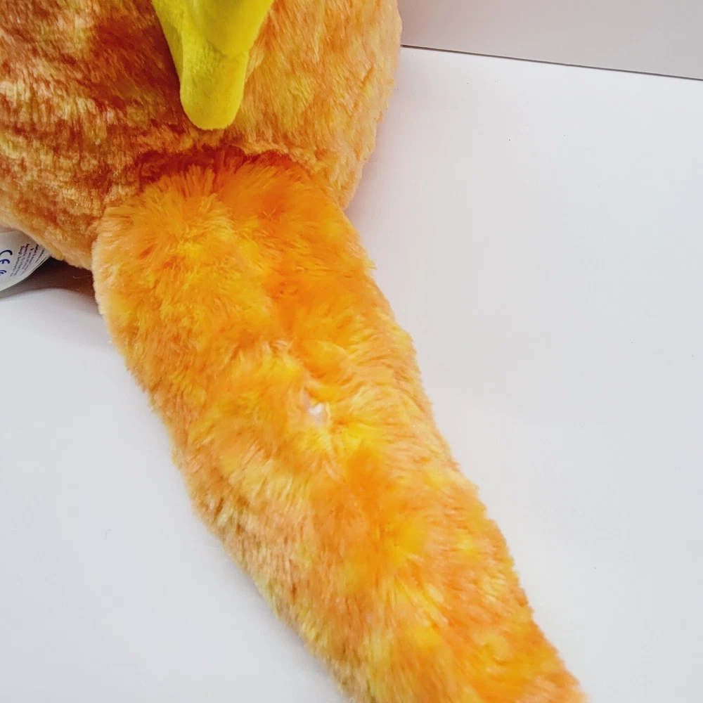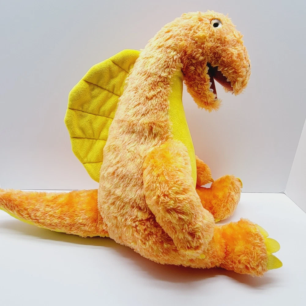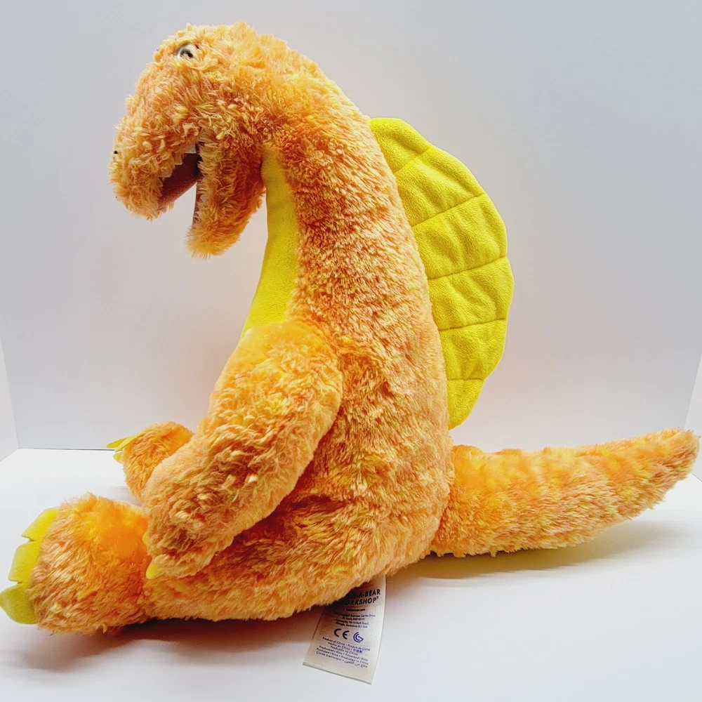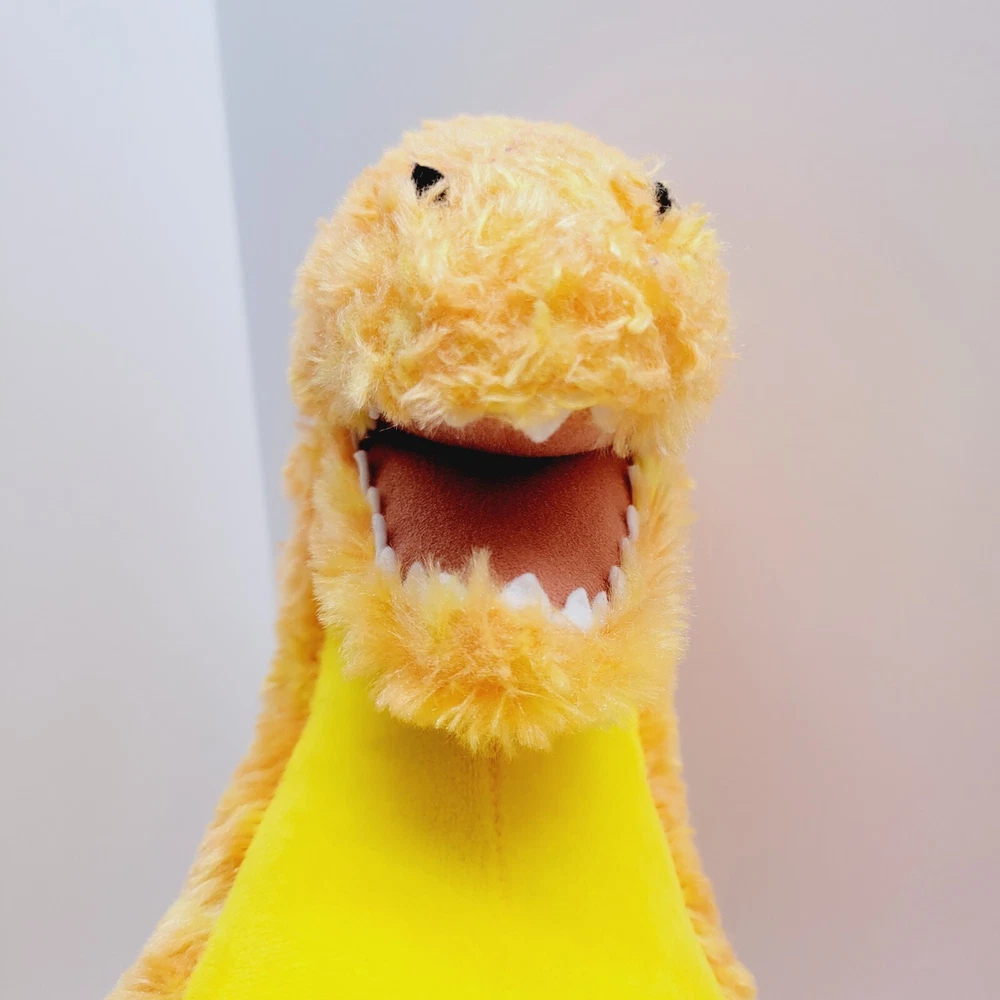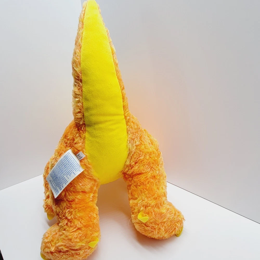 BAB Build A Bear Velociraptor T Rex Dinosaur Plush Orange Yellow 17” There is a small hole in the tail on the top seam. Please see pictures.