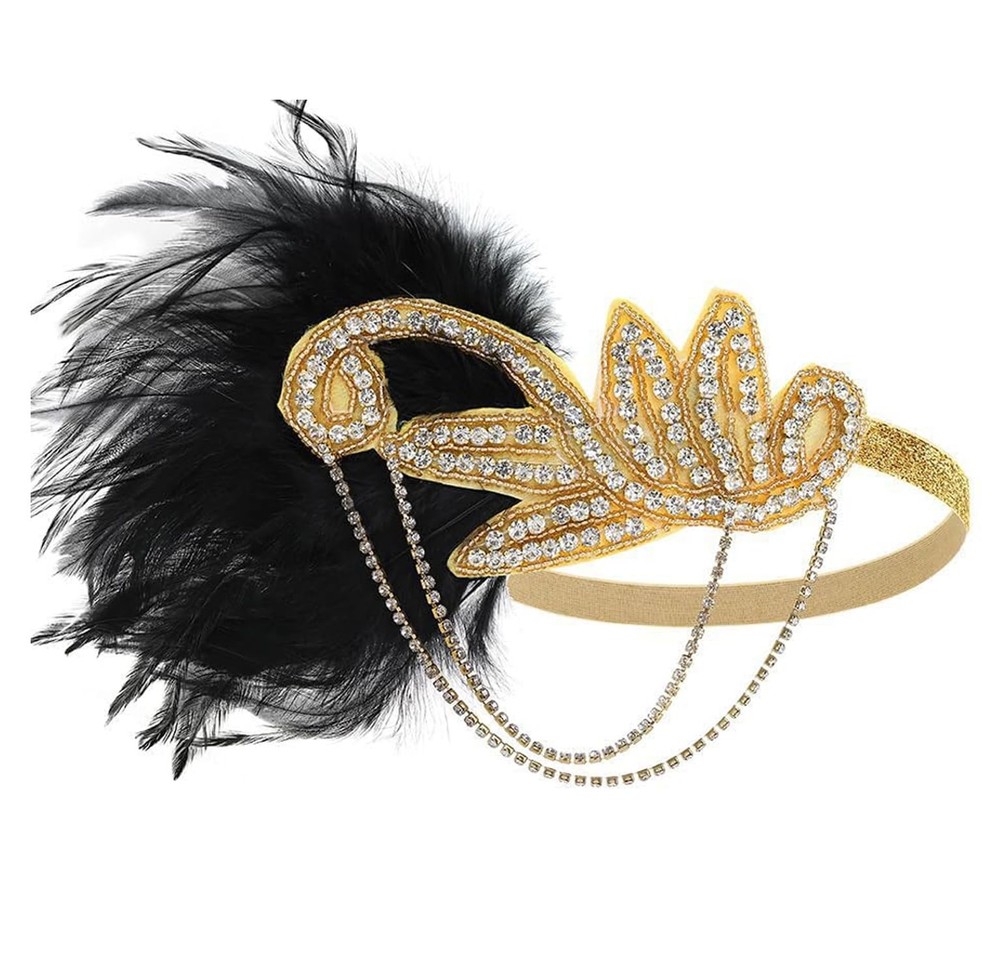 BABEYOND 1920s Accessories for Women - Flapper Feather One Size, Black Gold Description Features: Package Includes: Headband * 1pc; Necklace * 1pc; Gloves * 1 pair; Earrings * 1 pair; Bracelet * 1pc; Plastic Holder * 1pc. Size: Free size. Headband is one size with elastic band; Necklace length-55"; Gloves length-21.6"; Plastic holder length-13.0". Feature: Various most popular vintage items for a great flapper girls look are elaborately combined to make you more confident and shine. Go back to roaring 20s with the fabulous flapper costume! Occasion: Perfect for roaring 20's parties, proms, lap dance costumes, Great Gatsby themed parties, Art Deco parties, Halloween, and all other vintage style occasions. Perfect Gift: This flapper set can be a sophisticated gift for your mom, sisters, girlfriend, friends to help them go back to roaring 20s! Product Details: Handling We will ship all orders within 1 business day of payment. Delivery We Do Not Ship Outside of the Continental US. Return Policy All items qualify for returns within 30 days of receipt. Buyer is responsible for return shipping on any item that is not damaged. Feedback We take our reputation seriously, we buy and sell online, so we understand the value of trust. If you are unsatisfied with your order, please contact us and we will work with you to resolve it to your satisfaction.