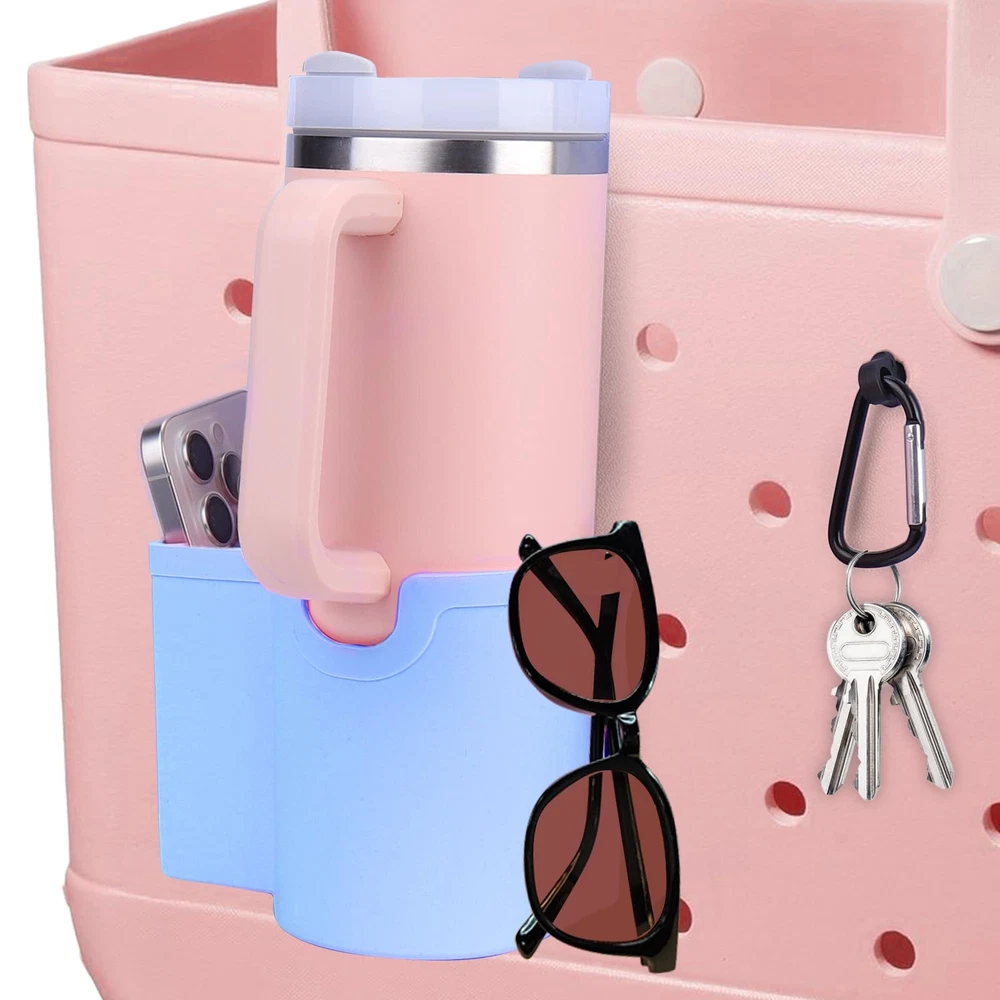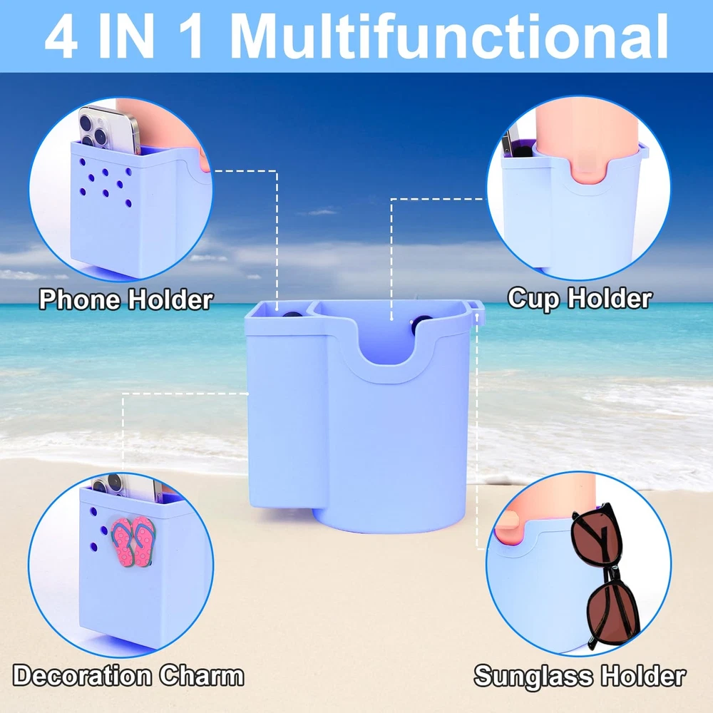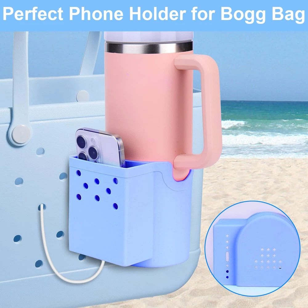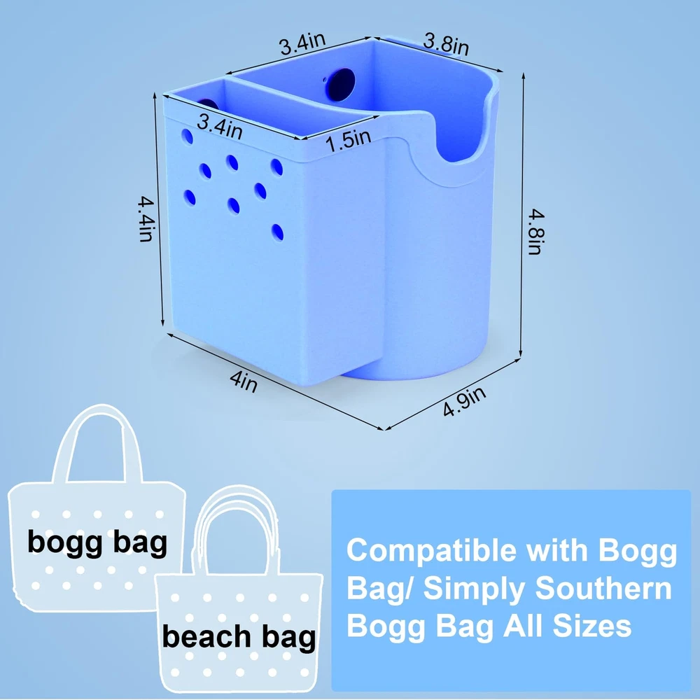 BABORUI 4 in 1 Accessories for Bogg Bag - Silicone Cup Holder Phone Holder Fits Most Cup and Cell Phone Compatible with Bogg Bag Simply Southern Bogg Bag (Blue) 【4 IN 1 ACCESSORIES FOR BOGG BAG】: You will get a silicone multi-functional inserts for bogg bag, combined cup holder, phone holder, hook and decorations, such a simple accessory to solve multiple storage 【Effortless Installation Experience】: Say goodbye to complicated installation processes. The BABORUI accessories for bogg bag has buttons for a simple and quick attachment, perfect for bogg bag and simply southern bag or other beach tote bag with holes 【PHONE HOLDER FOR BOGG BAG】: The 3.4 inch width bag phone holder fits most cell phone cases, say goodbye to rummaging around in bogg bag to find phone. BABORUI cell phone holder keeps your device easily accessible, making beach trips and outings a breeze 【CUP HOLDER FOR BOGG BAG】: The 3.4 inch width cup phone holder for 16-40oz water bottles, great for stanley AND yeti tumbler, ensuring enjoy happy time without worrying about drink spilling or getting lost 【DURABLE MATERIAL】: Made from durable silicone, soft and lightweight, reusable, waterproof and sandproof, making them ideal for beach travel and outdoor adventures. Upgrade beach tote bag with bag accessories inserts and enjoy a more organized and stylish experience wherever you go