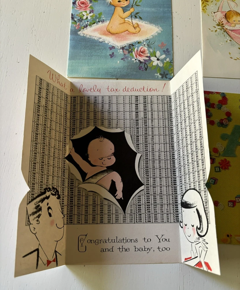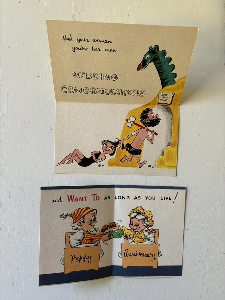 Vintage mixed lot of unused greeting cards for new baby, anniversary and wedding. Only one envelope. Please see photos. New baby Wedding Anniversary Retro Mid century