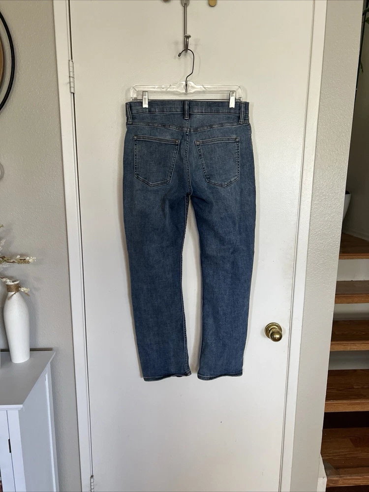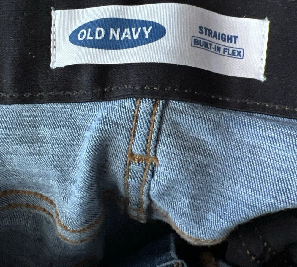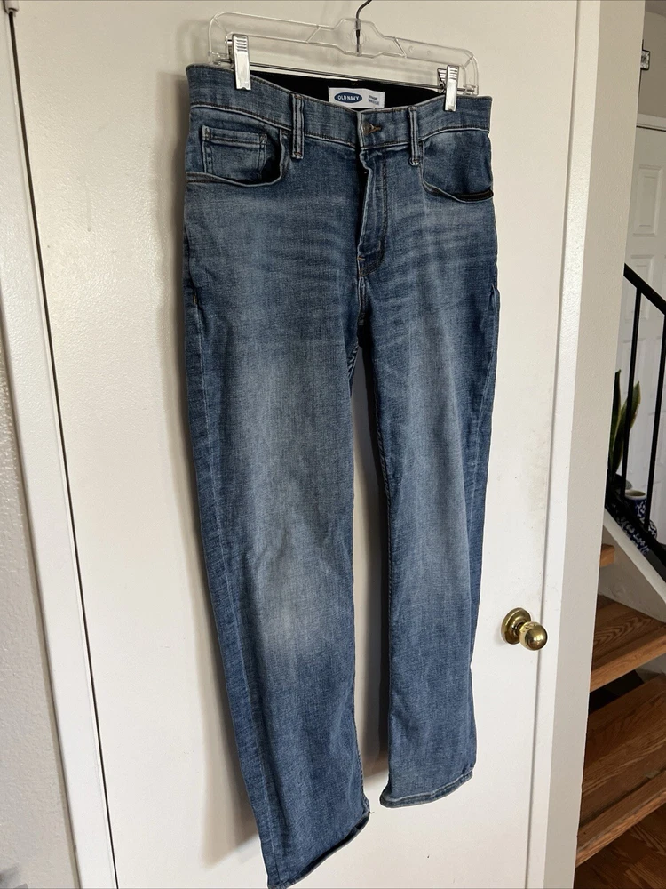 Get ready for school with these stylish Old Navy jeans. The blue denim fabric is made of a comfortable cotton blend with easy care and stretch features. The straight leg style has a mid-rise and a 5-pocket design . These jeans are perfect for any season, whether it's winter, summer, fall, or spring. They are machine washable and have a waist size of 30 inches with an inseam of 30 inches. The medium wash and solid pattern make them a versatile addition to any wardrobe. Don't miss out on the chance to personalize these jeans with your own unique style.