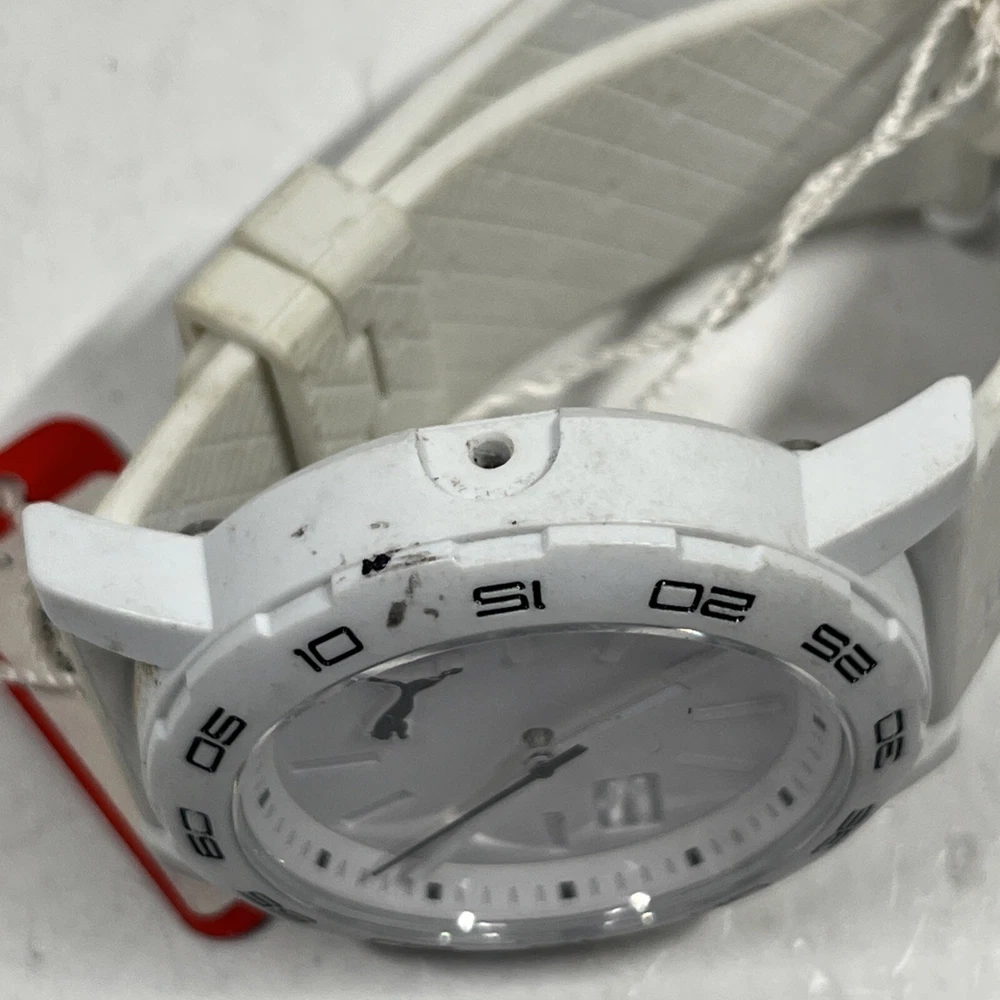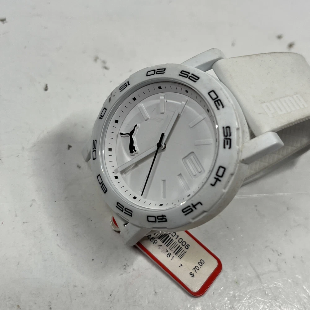 (BADLY BROKEN) PUMA WATCH UNISEX WHITE (PJ103201005) Watch is previously worn. Watch needs a battery, has the crown broken off, and some inner gears may be broken because the watch face hands are unstable and move around inside the face. Thank you for viewing! We appreciate your business from the bottom of our hearts. We pack and ship all items same or next business day. We ship with USPS Ground Advantage. Always free shipping for all items across our entire store. All of our listings and descriptions are made in the best faith possible to accuracy and honesty of what we are offering. We inspect EVERY SINGLE ITEM to the best of our knowledge and ability before making it available for sale. Why shop with us? We are in the business of your satisfaction here at New Era Deals. You do not need to look any further when it comes to friendly, helpful customer service. Do not hesitate to ask us any questions. If by chance any issue arises with an item, we guarantee we will help find a solution. 30 day returns are accepted for all items available in our store. At the end of the day, we put our customers happiness above all. Please note that while we do offer returns on every item in our store, we have a 0 tolerance policy for fraudulent and unfaithful returns. If you are found to be stealing or abusing our return policy (i.e. returning an empty box or different item from what was purchased) we will 100% reach out to eBay and the local authorities. PLEASE use returns in an honest manner. Our story: We are a small group of eBay sellers with over 20 total years of experience selling on eBay. We collaborated in January 2024 to create project New Era Deals! Selling here on eBay is our pride and passion and lets us express our entrepreneur goals. We are very pleased to bring to our valued customers quality products across endless categories. We appreciate every single one of our past, present, and future customers very deeply!