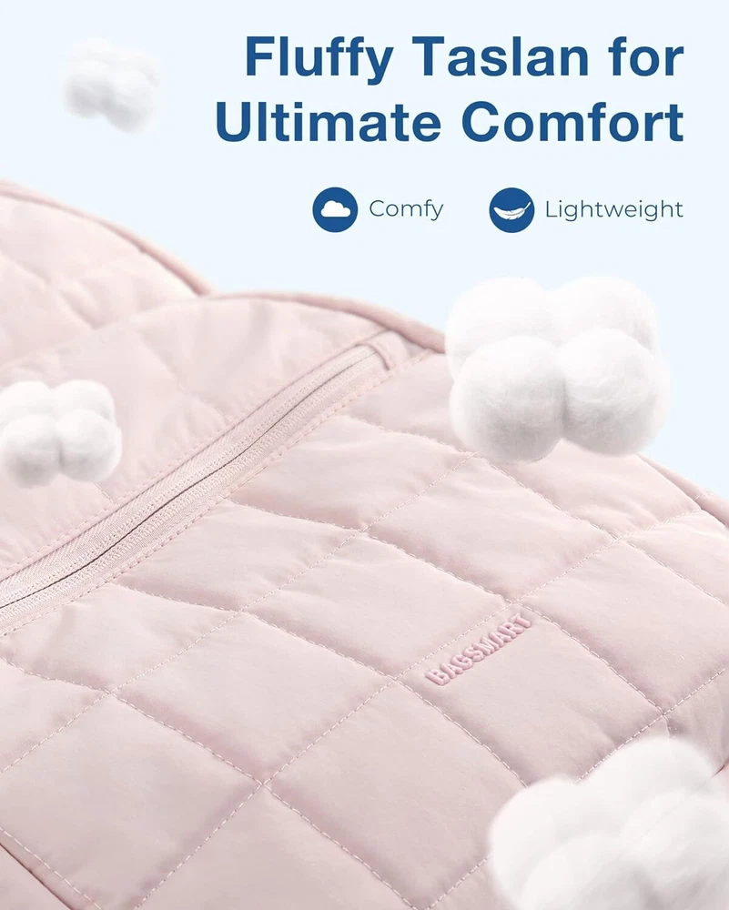 BAGSMART College Laptop Backpack, Travel Backpack for Women, Pink Product Details STYLE MEETS FUNCTIONALITY: Our women's backpack combines style and practicality, you don't have to compromise on fashion for functionality which allows you to showcase your unique style while comfortably carrying all your essentials AMPLE COMPARTMENTS: Stay organized and prepared with the BAGSMART Laptop backpack. With its thoughtfully designed compartments, you can easily separate and store your 15.6" laptop, books, supplies, and more. No more searching for items in a cluttered bag - everything has its place. Dimensions:17.3×11.8×7.9 inches ENHANCED COMFORT: The padded straps ensure an even distribution of weight, while the breathable mesh on the backside keeps you cool and provides ergonomic support for your back. Even when filled with heavy books and supplies, you can enjoy a comfortable carrying experience VERSATILE ALL-IN-ONE BACKPACK: TSA Friendly, the strap on backside allows easy slides over suitcase handle, whether you're going on summer holiday, weekend getaways, family trip, hiking, camping, or any other outdoor activity, our travel backpack is a reliable companion, a real travel essentials you must have