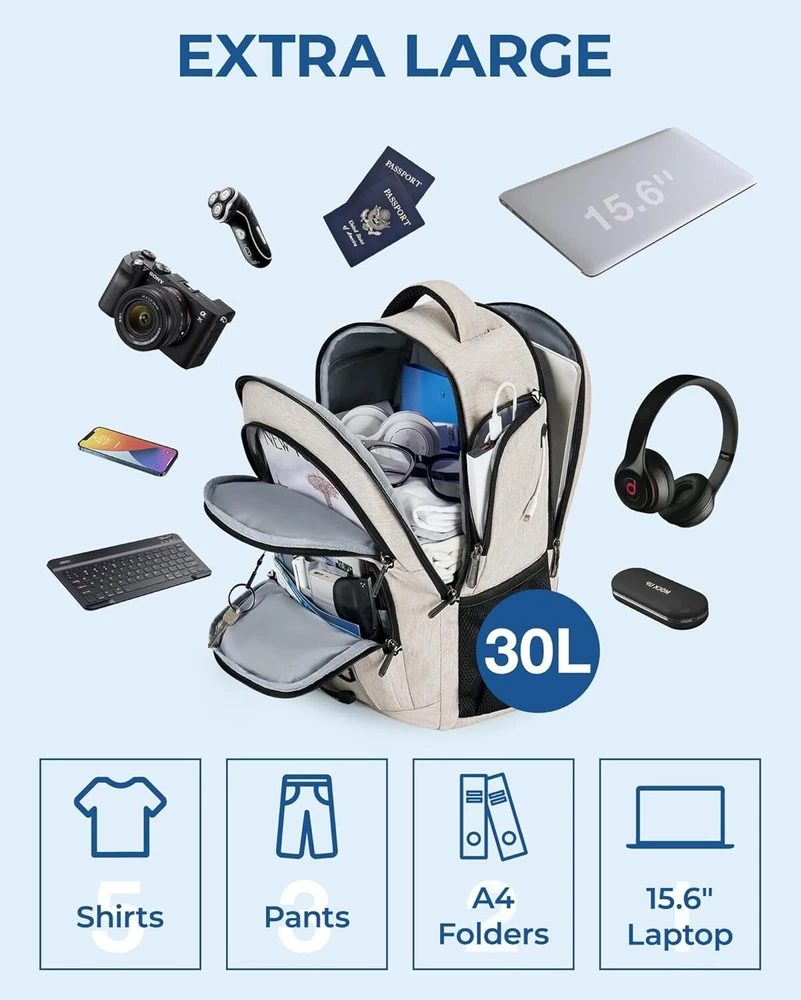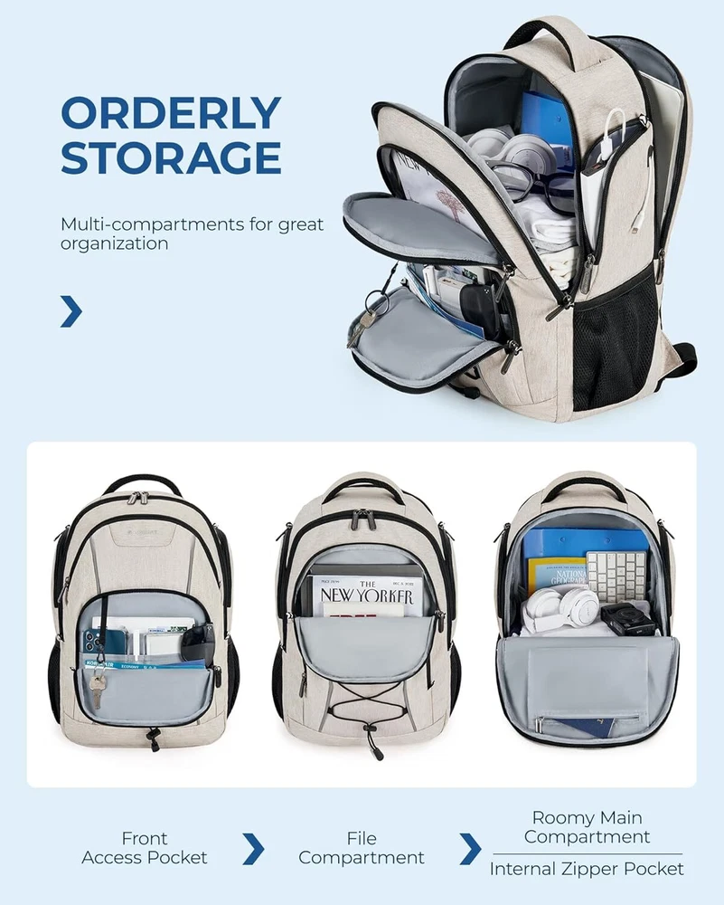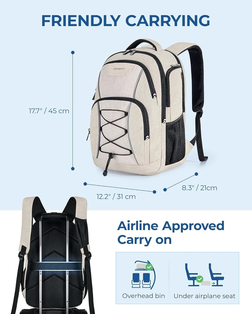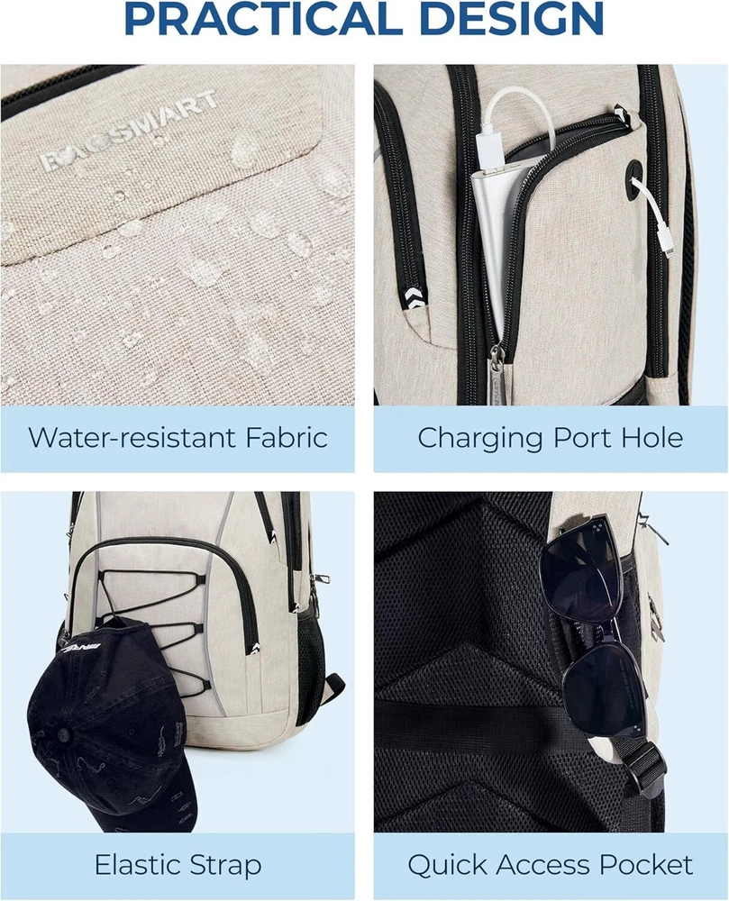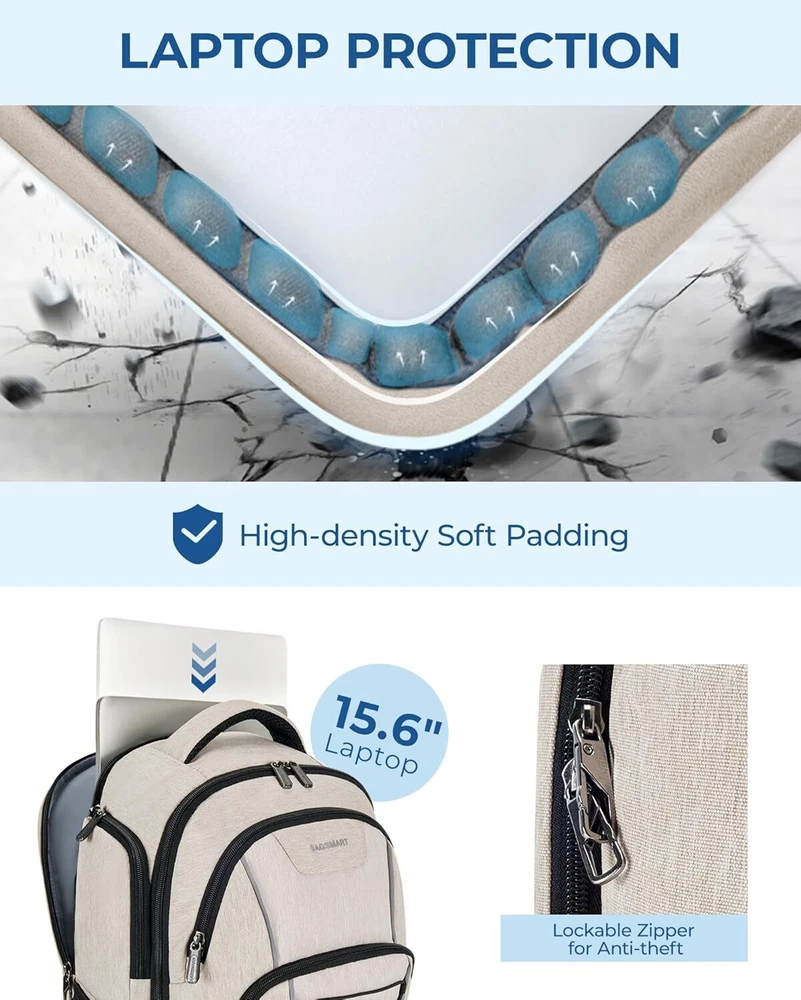 HomeBAGSMART Travel Laptop Backpack, 15.6 inch Anti Theft Backpack Beige