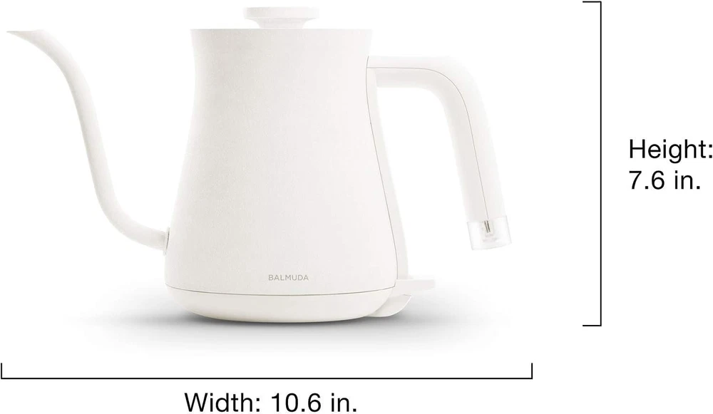 Store New Arrivals Add to Favorite View Feedback Contact BALMUDA the Kettle | Electric Gooseneck Kettle | Lightweight | Stainless Steel | 0.6L (20Fl Oz) Capacity | Neon Light Indicator | Perfect for Tea and Coffee | US Version | White Description Item model number K02H-WH Global Trade Identification Number 00051497133986 Capacity 0.6 Liters Color White Special Feature Automatic Shut-Off Brand BALMUDA Material Stainless Steel Item Weight 2.7 pounds Model Name K02H-WH Recommended Uses For Product Making coffee, tea, and instant noodles Package Information Kettle Included Components Kettle, Lid, Power Base, Instruction Manual Finish Type Stainless Steel Product Dimensions 10.6"L x 5.6"W x 7.6"H Manufacturer BALMUDA LIGHTWEIGHT, PERFECT SIZE - Easy to use and light to handle, BALMUDA The Kettle is the perfect size for common kitchen needs. It holds just enough water for three standard cups of coffee — or two large mugs PRECISE POURING - BALMUDA The Kettle's precision pour spout is designed for the optimal pour-over flow rate. A pouring experience unlike any other, based on tireless ergonomic research. The handle fits snugly into your hand and the hot water flows smoothly and cleanly from the nozzle, letting you direct the flow exactly where you want it to go. From careful overpouring to everyday cup-filling, this kettle is a beautiful and comfortable companion QUICK HEATING - BALMUDA the Kettle boils water in just a few minutes, meaning you can enjoy a cup of coffee in no time. Stop wasting your time in front of the microwave or stove GENTLE GLOW - The kettle’s power light is a tiny neon tube in the handle with a unique, delicate glow that can be seen from any angle. This attention to detail helps to enrich even the few minutes it takes to boil a pot of water ELECTRIC KETTLE FOR EVERYDAY - Because it is smaller in size, the water is heated faster. The beautiful texture of painted stainless steel and soft power light glow makes the time of boiling water a joy everyday Product description ABOUT US We offer the best prices around on high quality products. Our E-store includes media such as books, movies, music and games while offering electronics, toys, sporting apparel, clothing, tools, general home, garden items and more. SHIPPING We are always working hard to ensure your package arrives as soon as possible. Please understand that some factors like weather, high postal traffic, and the performance of shipping companies are outside of our control. RETURNS We offer a 30-Day Return Policy on items which you are not completely satisfied with. You have the option for a full-refund or an exchange of the item. No returns are available on items shipped outside of the USA. PAYMENT We accept PayPal. CONTACT US This page content is yet to come Please ad us to your favorite seller and visit again later Thank You CUSTOMER SATISFACTION We try our very best to make sure every customer is completely satisfied. If there's a problem, message us! We're happy to help. WE ACCEPT Copyright © 2021 AutoDS. | All Rights Reserved