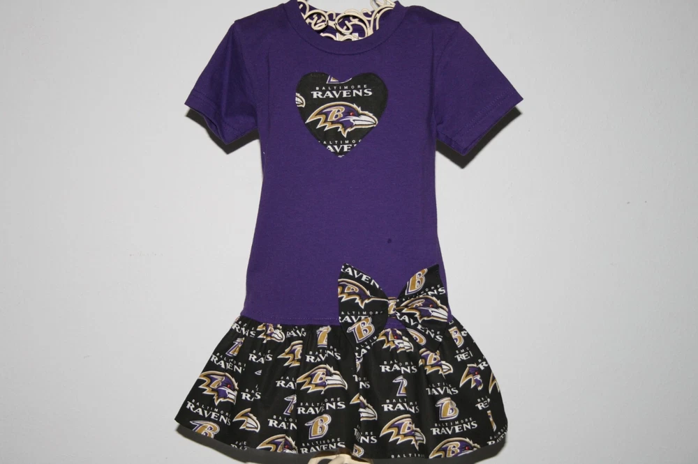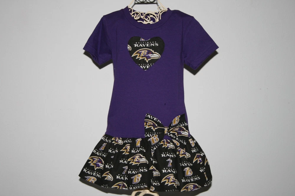 Dress your little one in this very cute RAVENS football themed dress! Handmade with care, this dress is perfect for any young fan. This Baby Dress is available in size 2T, Whether you're heading to a game or just showing off your team spirit, this dress is the perfect choice for any occasion and makes a Great Gift for Birthdays ;o) All dresses are made after they purchased and I usually get them in the mail within 2 days. Fabric & T shirts are 100% cotton Machine wash for best results