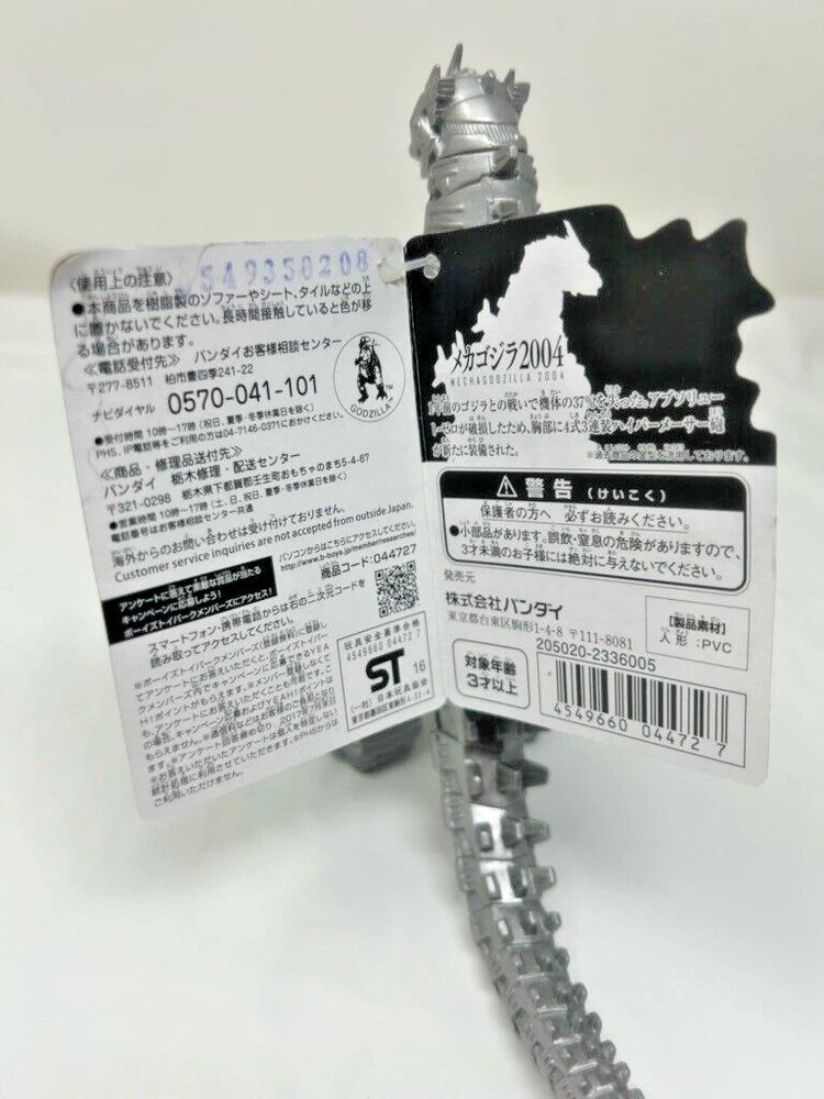 Item Title Description About This Items BANDAI 2004 Mechagodzilla Soft Vinyl Figure 6” Godzilla Movie Monster Size H 17cm (6") D 19cm (7") Condition The item is brand-new. (There is dirt on the tag.) Included Items None Shipping ・We will ship by FedEx or DHL or Japan Post. (We prioritize express delivery for more reliable and quick delivery.) ・Product will be shipped in a Box with packing materials. This shipping method will allow you to receive the item within 5 to 10business days from the time the item is sent out! However, delivery may take some time depending on the delivery status in your country and the status of the post office. Please note that delivery may take longer than the "scheduled delivery date". ・We always send the item with a tracking number. So please place an order without any concern on delivery. You can always track the delivery status. ・ Shipping is available from Monday to Friday. Weekends are not available because freight companies are closed. About Importer's Obligation Import duties, taxes and charges are not included in the item price or shipping cost. These charges are the buyer's responsibility. Please check with your country’s office to determine what these additional costs will be prior to bidding or buying. We can’t reply gifts or unreasonable requests such as declared amount. If have any questions, anytime contact me! and if you look for any item, please feel free to contact us. Thank you for Watching.
