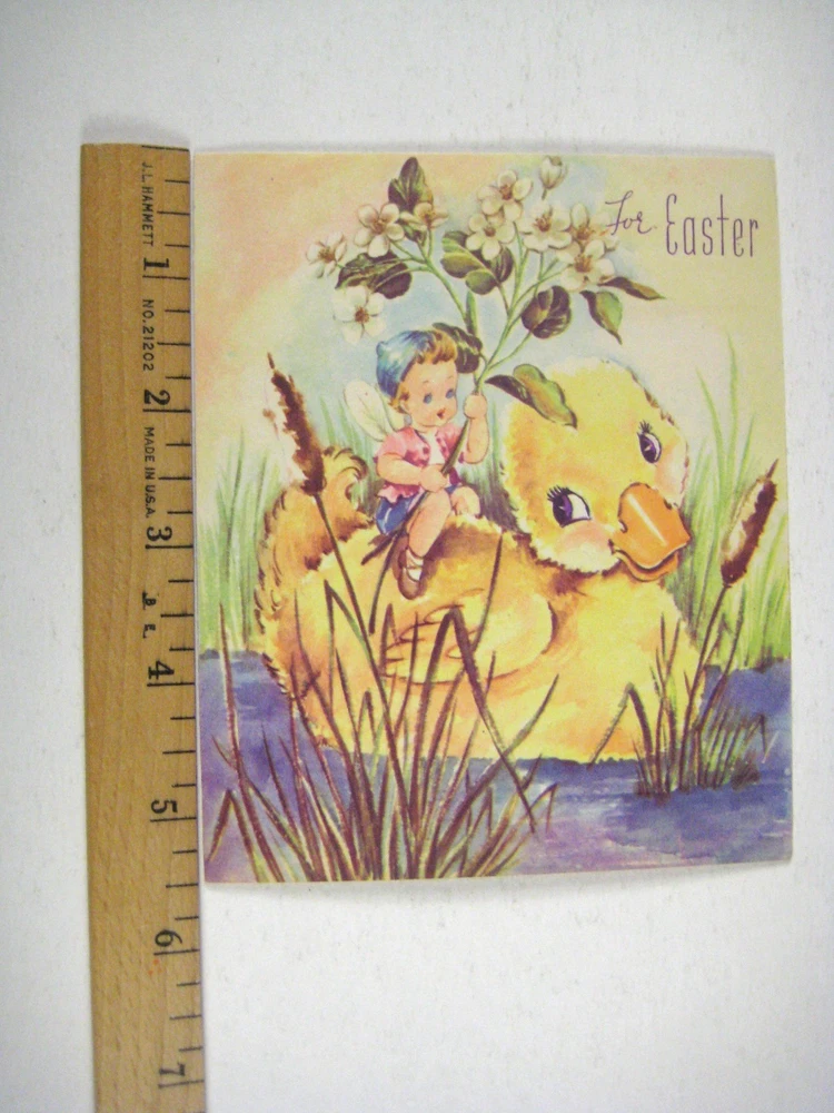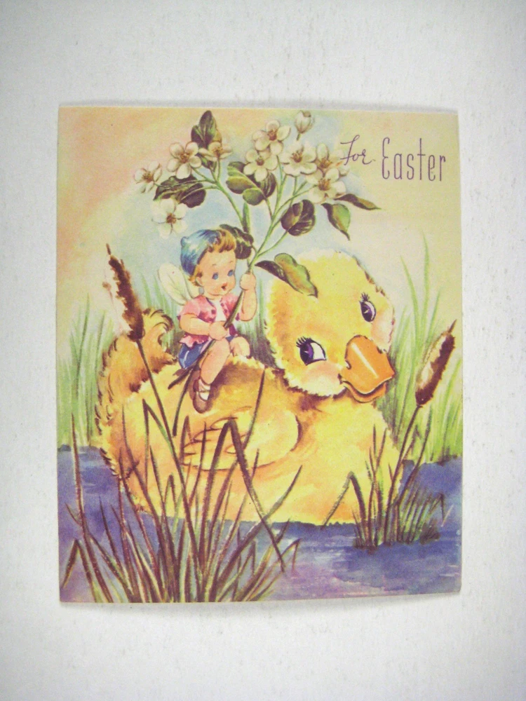 BAP Card Easter Day 1949 Used USA Duck Swimming Boy Child Torn Back