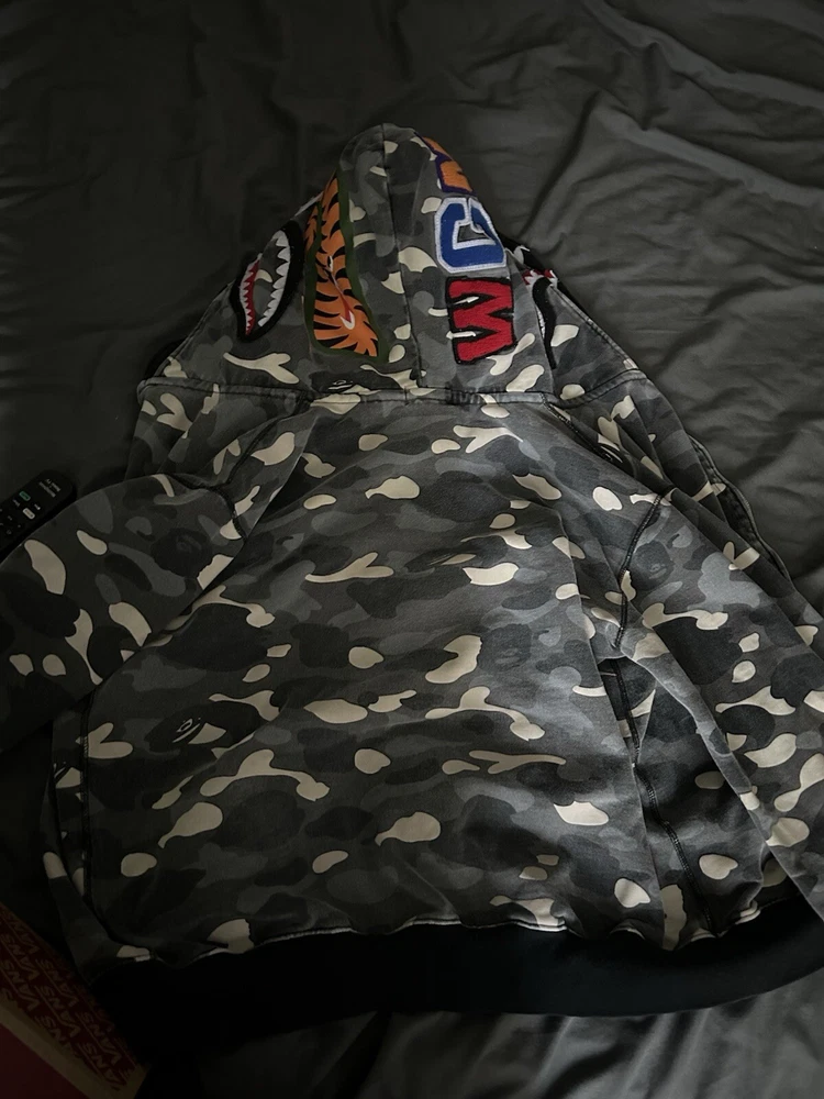 BAPE City Camo Shark Wide Full ZipDouble Hoodi Size L. Condition is Pre-owned. Shipped with USPS Priority Mail.