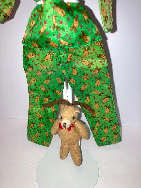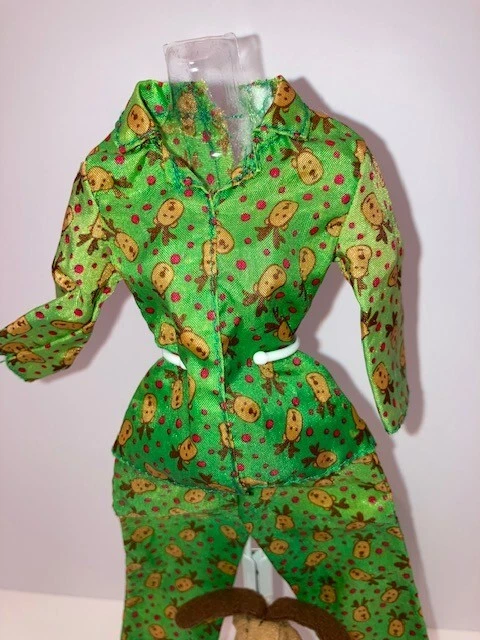 BARBIE Doll Cloth-GREEN HOLIDAY PJS PAJAMAS CHRISTMAS w STUFFED REINDEER