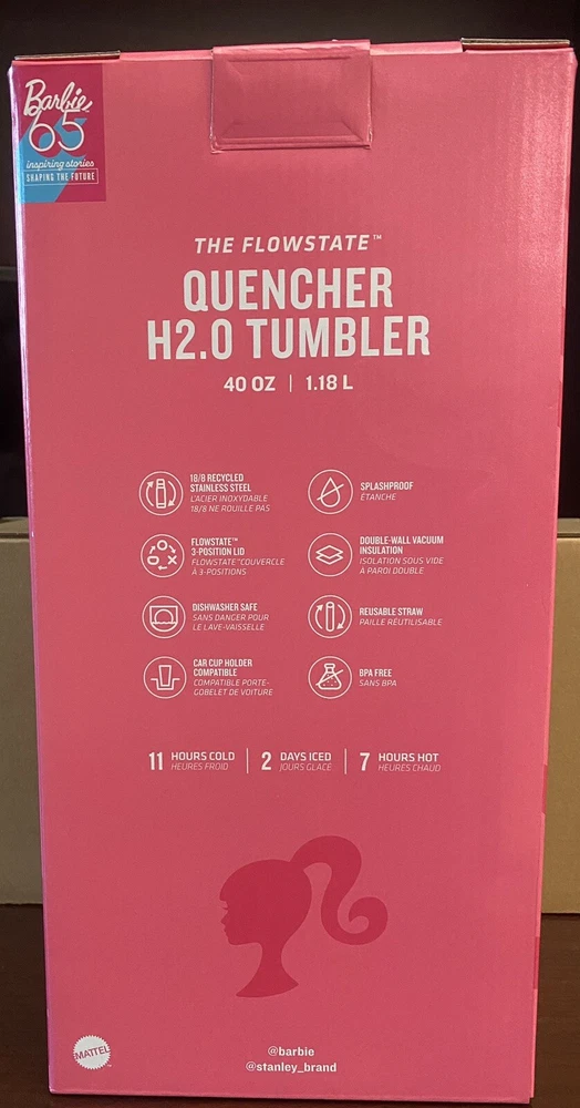 This Barbie Icon 40 oz Stanley Cup tumbler is perfect for any Barbie collector or fan. The pink glitter design adds a touch of fun to any drink, whether it's hot or cold. The tumbler is made of stainless steel, plastic, steel, and BPA-free plastic, ensuring it's durable and safe to use. With a capacity of 40 oz, this tumbler is great for on-the-go use or for sharing with friends. It's break/chip resistant and comes with a handle for easy carrying. The tumbler is also insulated, keeping your drinks hot or cold for hours. Plus, it's recycled, making it an eco-friendly choice. The Barbie Icon tumbler is machine washable and comes with a lifetime manufacturer warranty.