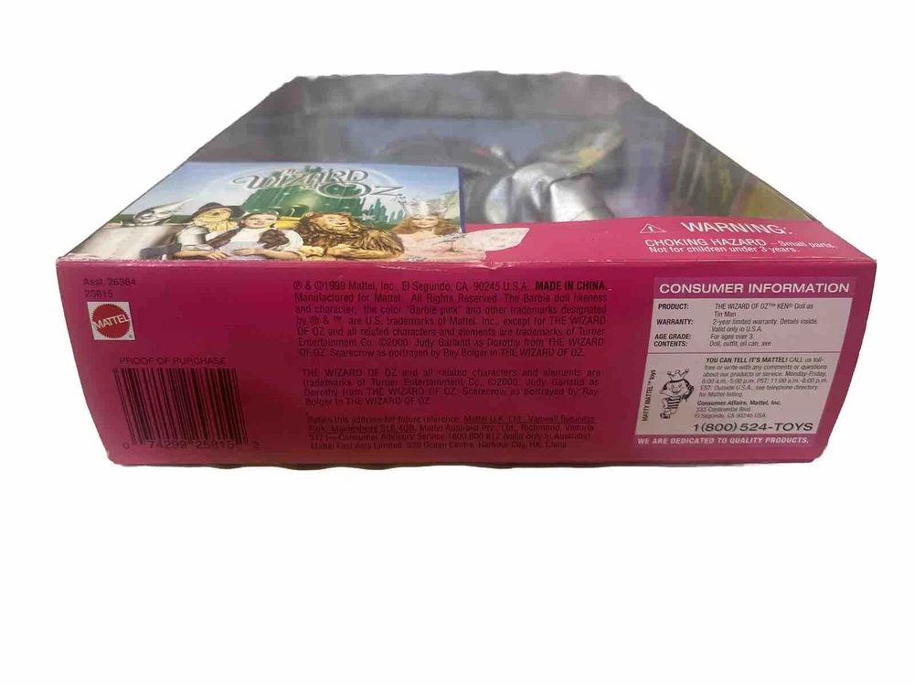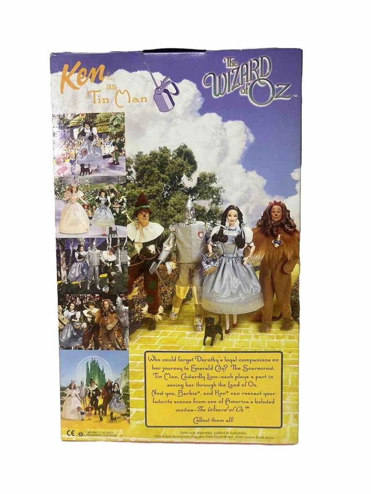 1999 BARBIE KEN AS TIN MAN THE WIZARD OF OZ - NIB - RARE Never Opened See Pics. This Barbie Collector Ken doll from 1999 is a must-have for fans of The Wizard of Oz franchise. This fashion doll features Ken dressed as the iconic Tin Man, making it a unique addition to any collection. The doll is still in its original packaging, never opened, ensuring its pristine condition. Don't miss out on this rare find for your dolls & bears collection. Damage on top left corner of plastic and box , never opened, look at all pictures before buying, thank you. All sales are final. Selling as is. No return or refund for any reason.
