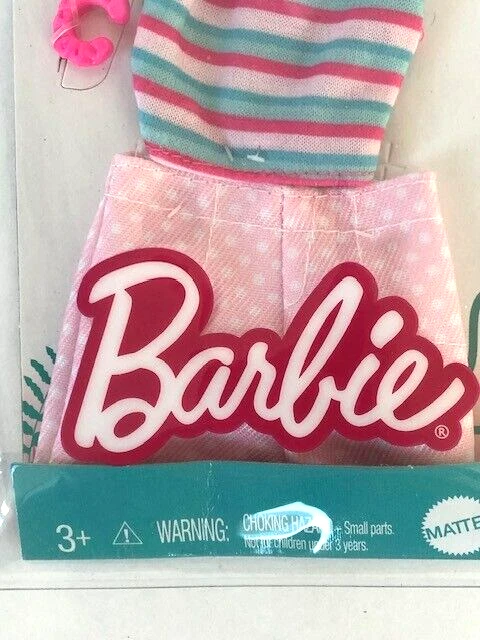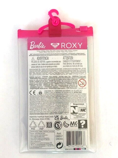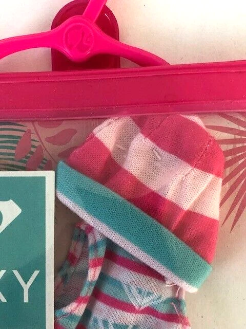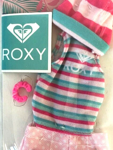 This Barbie doll fashion pack incorporates recognizable icons from popular lifestyle brand Roxy into graphics and prints Imaginations can head anywhere in this versatile outfit; a striped knit tee and hat, woven pink skirt and a bracelet Brand new in zip lock bag From a smoke-free home I will pay the return shipping if I missed a flaw or sent incorrect item, otherwise returns at buyer's expense. I am happy to combine and reduce shipping on all items unless otherwise stated. I ship within 1-2 business days.