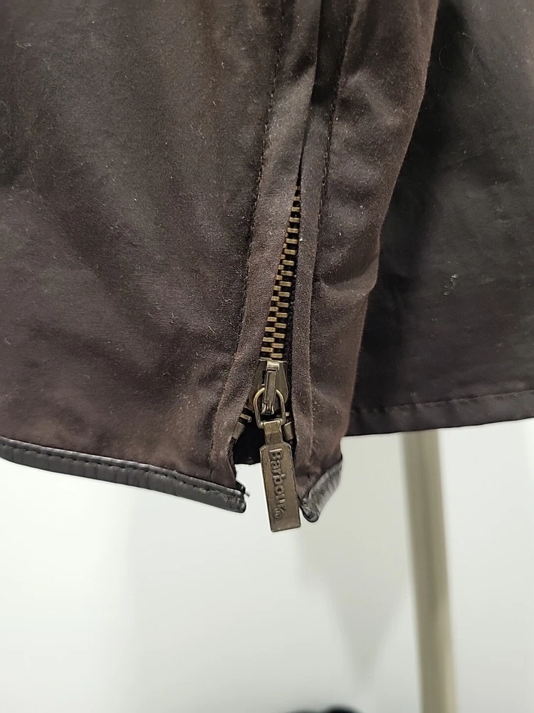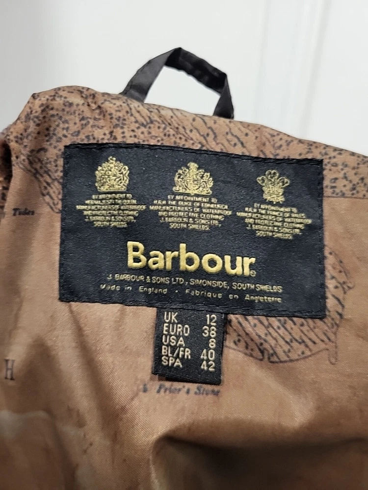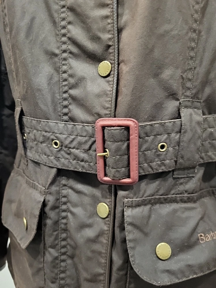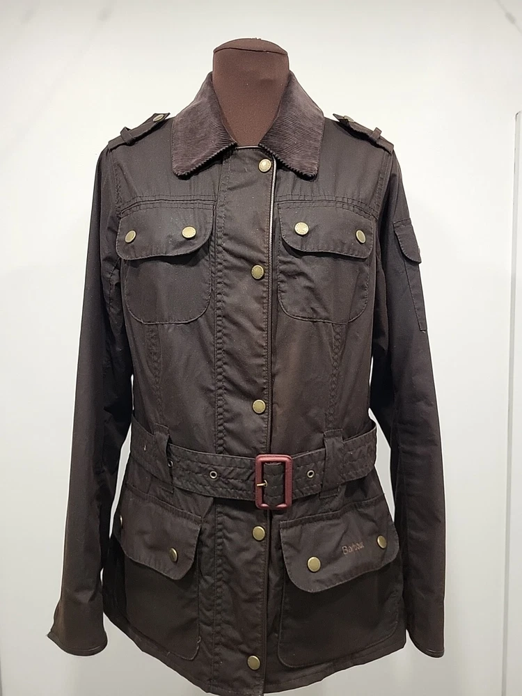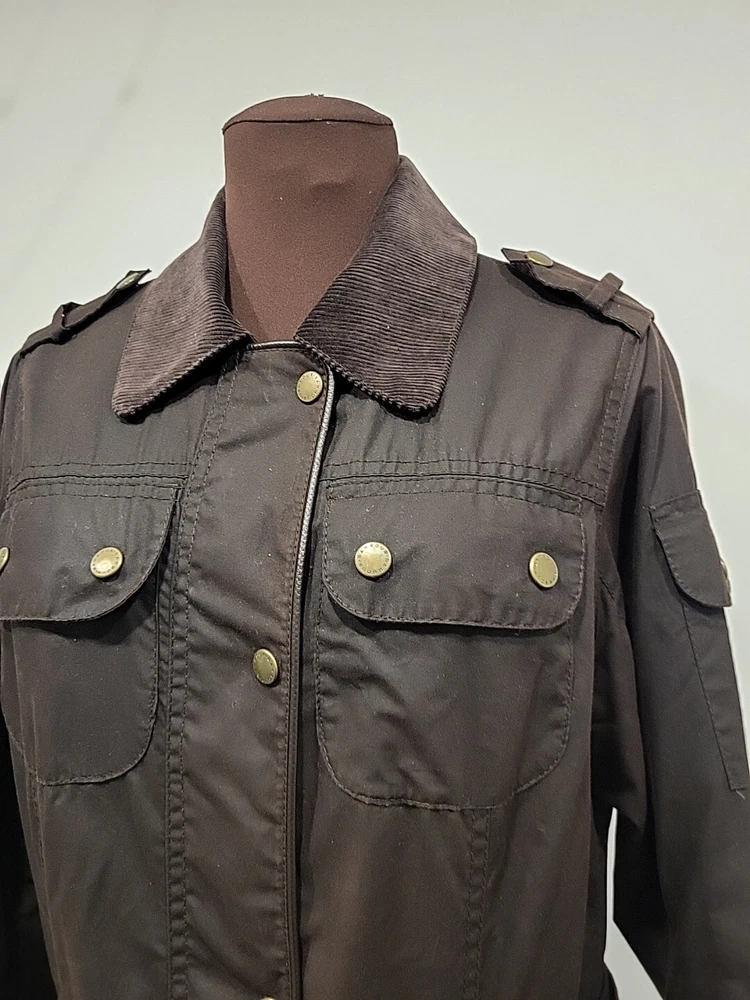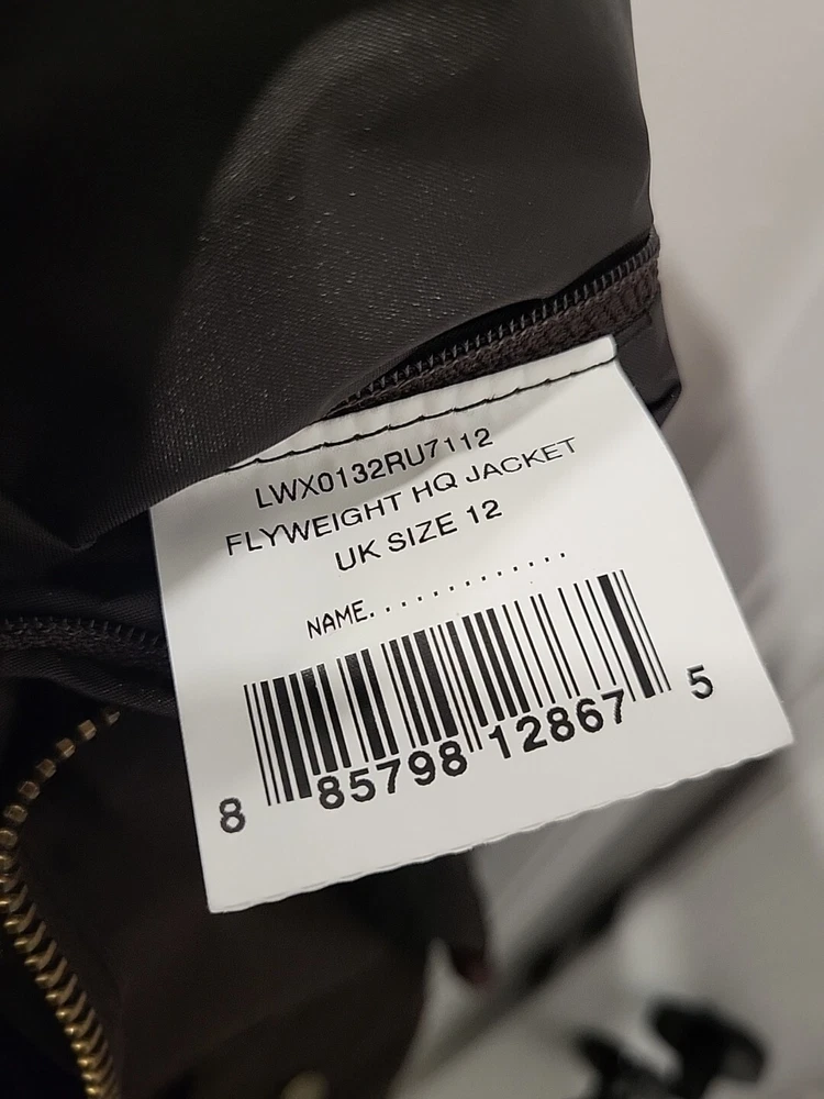 BARBOUR FLYWEIGHT HQ Wax Jacket Women UK 12 Brown Country Clothing Coat Waxed layer Few marks as shown but overall in very good conditon still Belted, with leather detailing on cuffs and pockets etc Any questions please ask