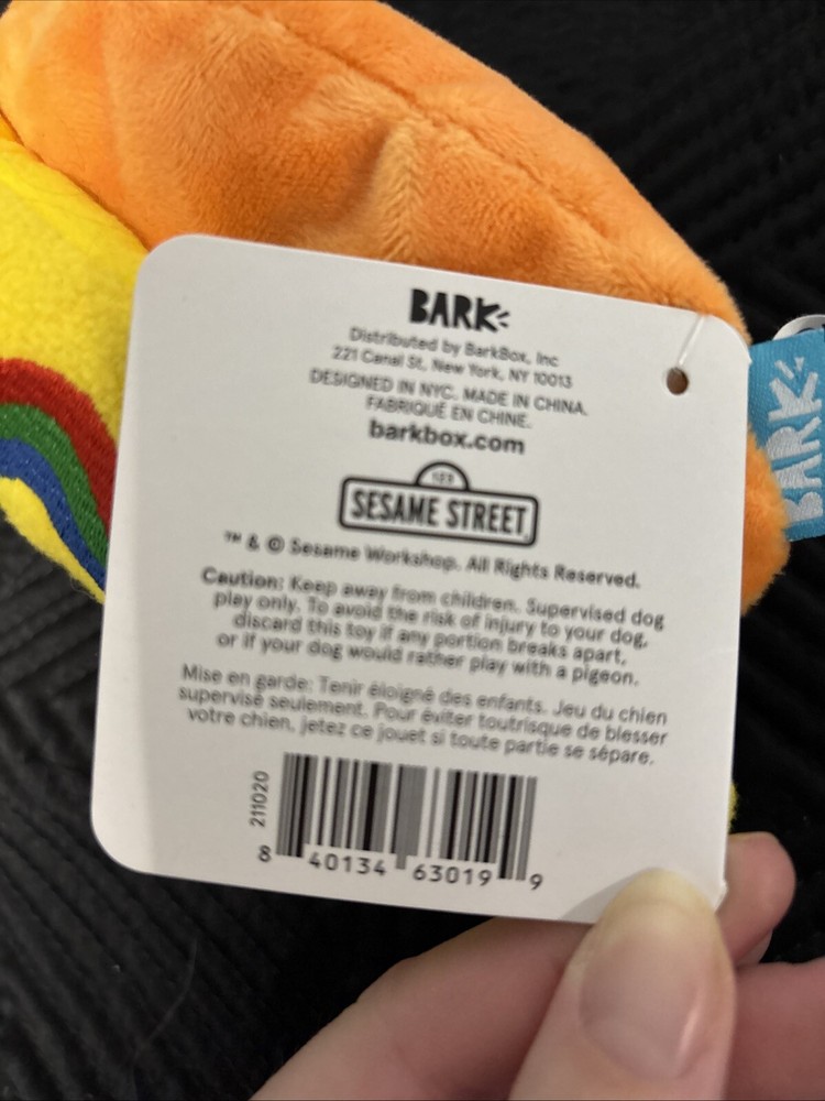 This is a BARK dog toy featuring Sesame Street's Bert character, designed for extra small dogs. The toy is suitable for dogs in the XS-S size range. With its playful and recognizable design, it offers entertainment and interactive play for small canine companions. The toy is part of the BARK brand's collection, known for producing high-quality and engaging toys for pets.