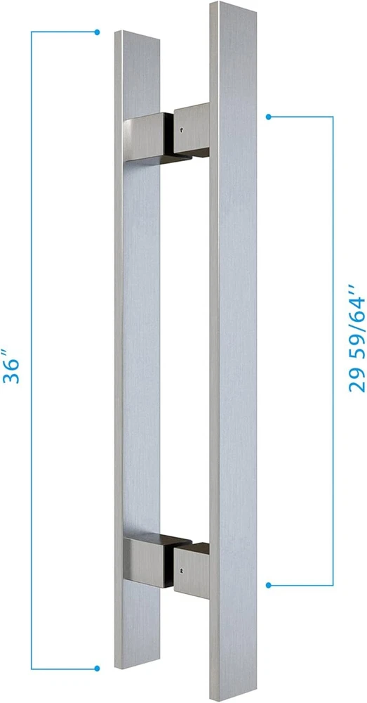 High Quality: Made of grade-304 stainless steel with 1.2mm wall thickness,brushed stainless steel finish ,anti-rust and anti-corrosion,ensures year of use. Pull Handle Size: 36 L ; 1 3/5 " W . The distance of two holes is 29 59/64"; .Fits for wood door panel thickness from 1-3/4" to 2 3/4'',fits for glass door panel thickness from 8/25'' to 12/25'' (If you want to use for a thicker door panel, you could buy some longer screws to match your door.) Widely Application:This double-side design handle can be used for wooden or glass door pulls, commercial doors,office door,barn doors,interior/exterior,entrance/entry door pull handles to coordinate all modern decorations. Package Includes:2 x pull handles;6xscrews;1xAllan key.All other necessary hardware is included as you see in the pictures.(The two handles cannot be installed separately) Perfect After-sales Service: We have a professional customer service team 24 hours online to serve you,if there is any problem about our products,please let us know ,we will try our best to solve your problem. Batteries Required? No Batteries Included? No Special Features Easy to Install Number Of Pieces 2 Finish Brushed Size 36 Inch Country of Origin China Manufacturer BARNSMITH Number of Items 1 Unit Count 1.0 Count Package Type FFP Handle Material Glass, Stainless Steel, Wood Metal Type Stainless Steel Item Weight 4.54 Pounds Theme Industrial Lock Type Key Lock Included Components Screw, Latch, Allen Key Special Feature Easy to Install Specific Uses For Product Door Exterior Finish Stainless Steel Product Dimensions 36"L x 1.6"W Color Stainless Material Stainless Steel Brand BARNSMITH 6020789
