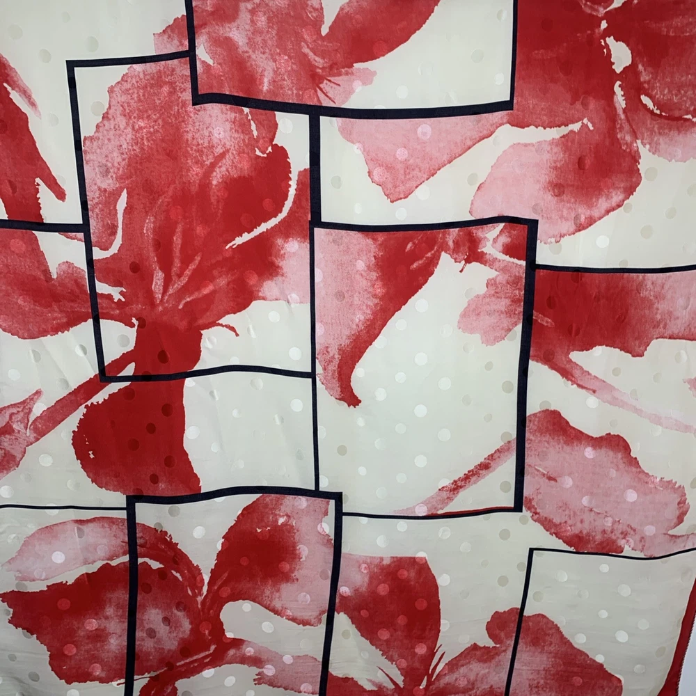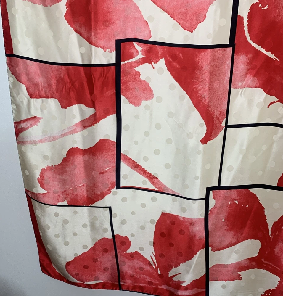 BASILE 34” SQUARE SCARF MADE IN ITALY 100% SILK BOLD RED BLACK IVORY FLORAL PRINT GORGEOUS PREOWNED AND IN EXCELLENT CONDITION PLEASE SEE PHOTOS