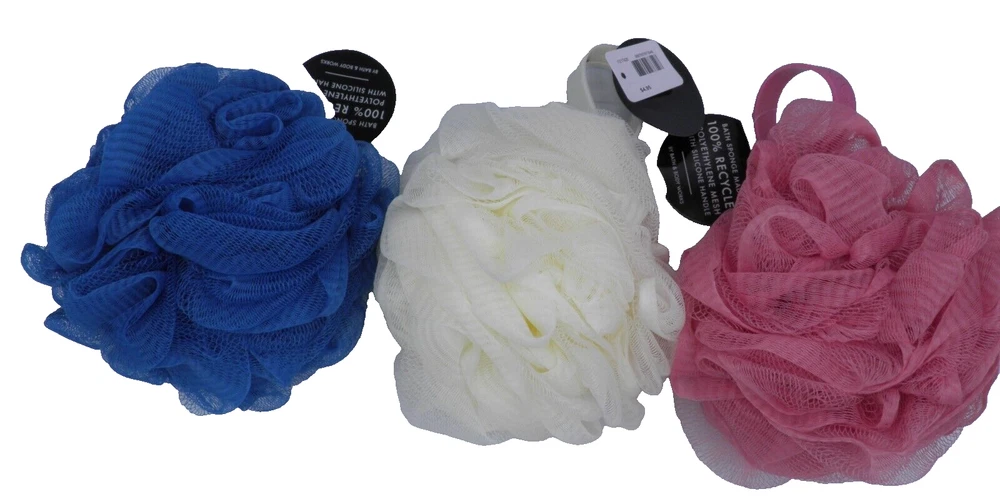 3X BATH & BODY WORKS SHOWER SPONGE LOOFAH POUF Cream Dusty Rose Blue 100% recycled NEW SHIPPING & HANDLING International shipping is not available. Mailing Address - We will ONLY ship to the address on file with eBay. Before making a purchase, please ensure that your address is correct. We may otherwise cancel the sale. Handling Time - Our handling time is set to THREE BUSINESS DAYS. We ship packages Monday - Friday, with the exception of holidays. Calculated Shipping - Our shipping fees are calculated based on weight and dimensions. We ship USPS and UPS depending on cost. This listing is NOT sponsored by, affiliated with or representative of the mentioned brand(s), trade name(s), trademark(s) and does not claim any ownership of such. All trademarks or brands mentioned in this listing are registered trademarks of their original owners who reserve all their rights and ownership. The use or mention of any trade-name, product name, or trademark is necessary and for identification and is for reference purposes only.