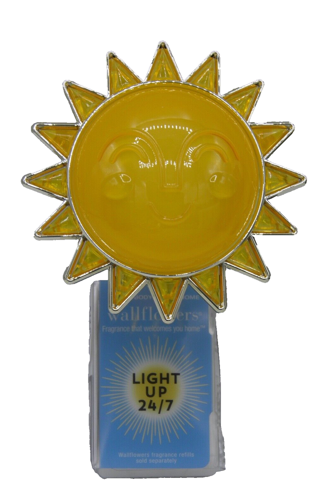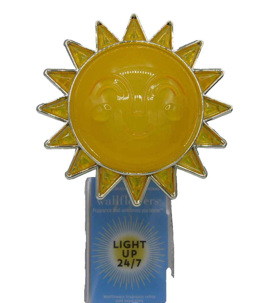Character Family: SUN Pattern: SUN Type: wallflower diffuser light-up Power Source: Wall Plug-In Brand: Bath & Body Works Intended Use: wallflower plug Color: Yellow Material: Plastic Features: Diffuser gtin13: Does not apply UPC: Does not apply Style: Classic Installation Area: Wall Number in Pack: 1