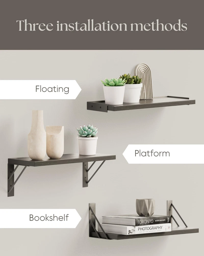 Create a stylish display with our rustic wall-mounted shelves. Perfect to display decor, these offer ample space for books, decor, and more. The black finish makes them a versatile addition to any room, enhancing your overall decor. Upgrade your room with our accessory shelves. These are perfect for displaying your favorite items, from books to collectibles. The perfect addition to any man cave or hobby room. These shelves combine functionality with a modern design. Maximize your storage with our wall-mounted bookshelf. This versatile shelf is perfect for any room, whether you need a bookshelf mount for your living room or bedroom storage. It’s also great for displaying your favorite items with an elevated touch. Organize your space with our wall mounted shelves. These black shelves are perfect for bedrooms, bathrooms, or living rooms. With their sleek design and easy installation, they are ideal for any room, providing both practicality and a stylish touch. Our Floating Bookshelf Wall Mount is designed to bring a touch of elegance to any room. Ideal for bedrooms or living rooms, our shelves offer ample storage while keeping a minimalist look. It’s a perfect choice for a man cave or any other room in your home.