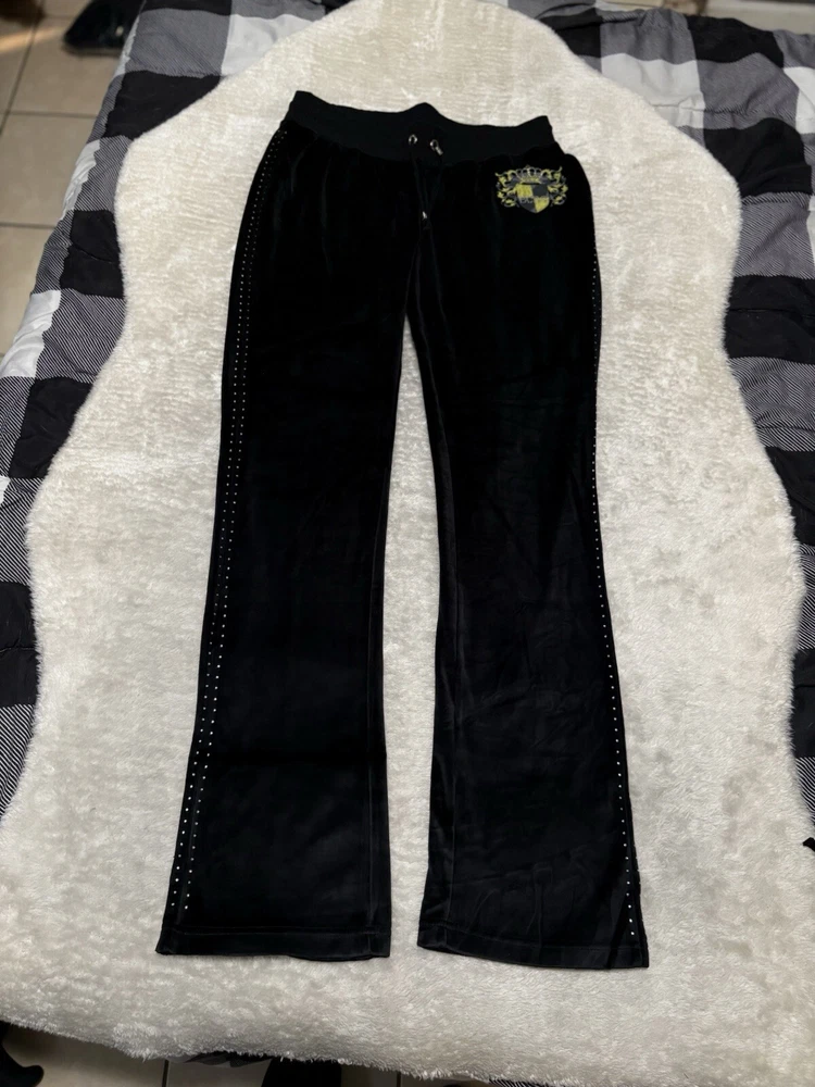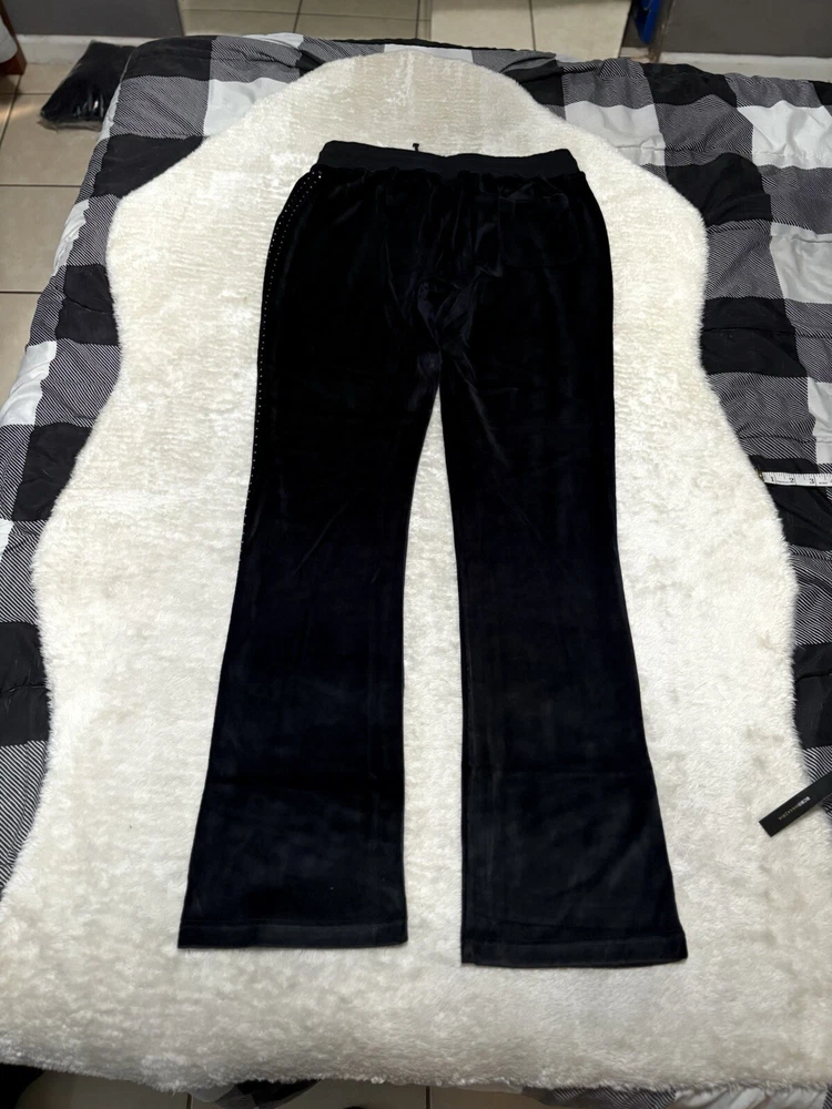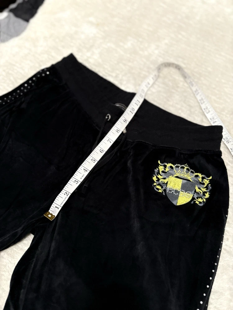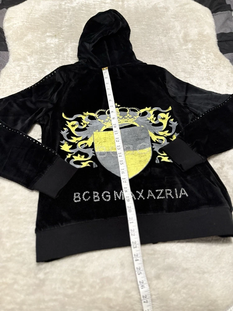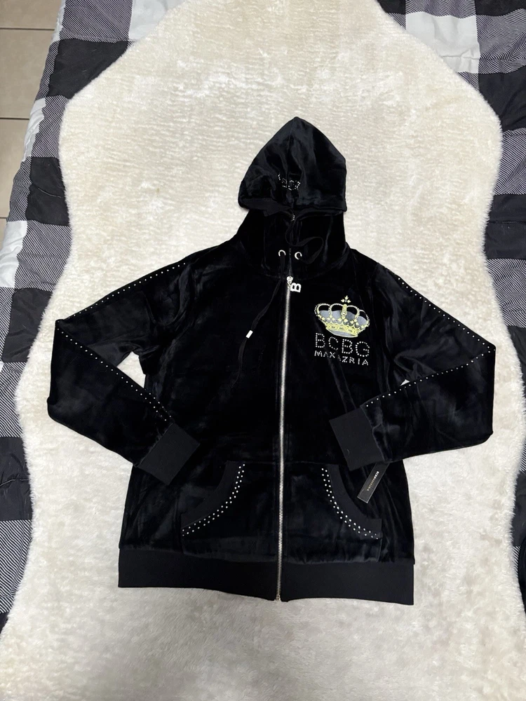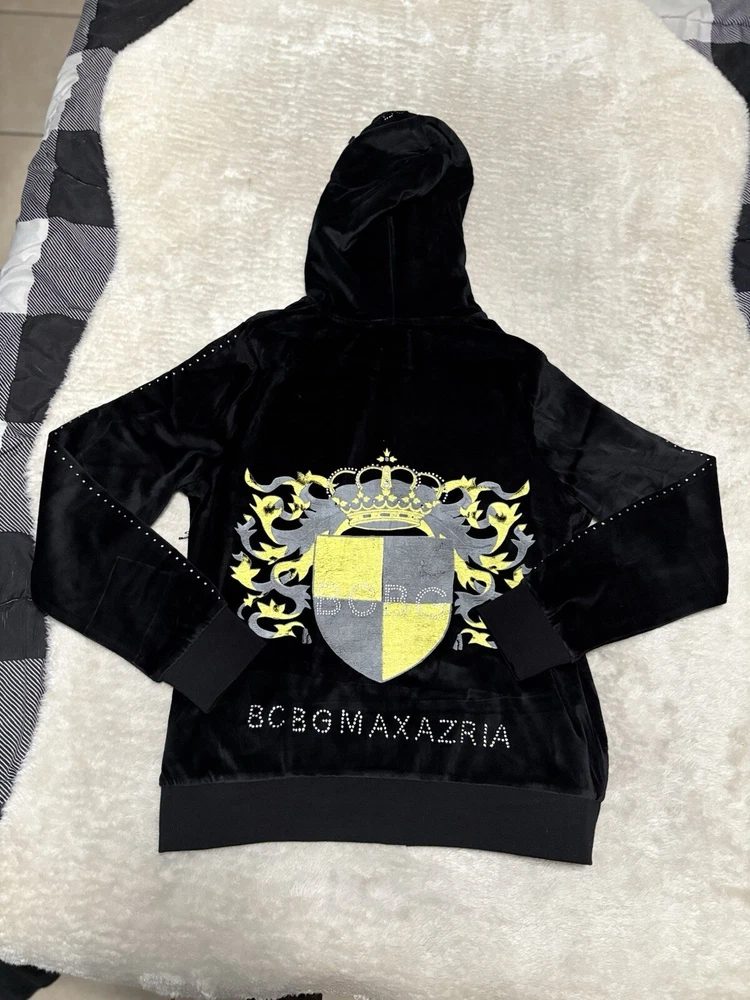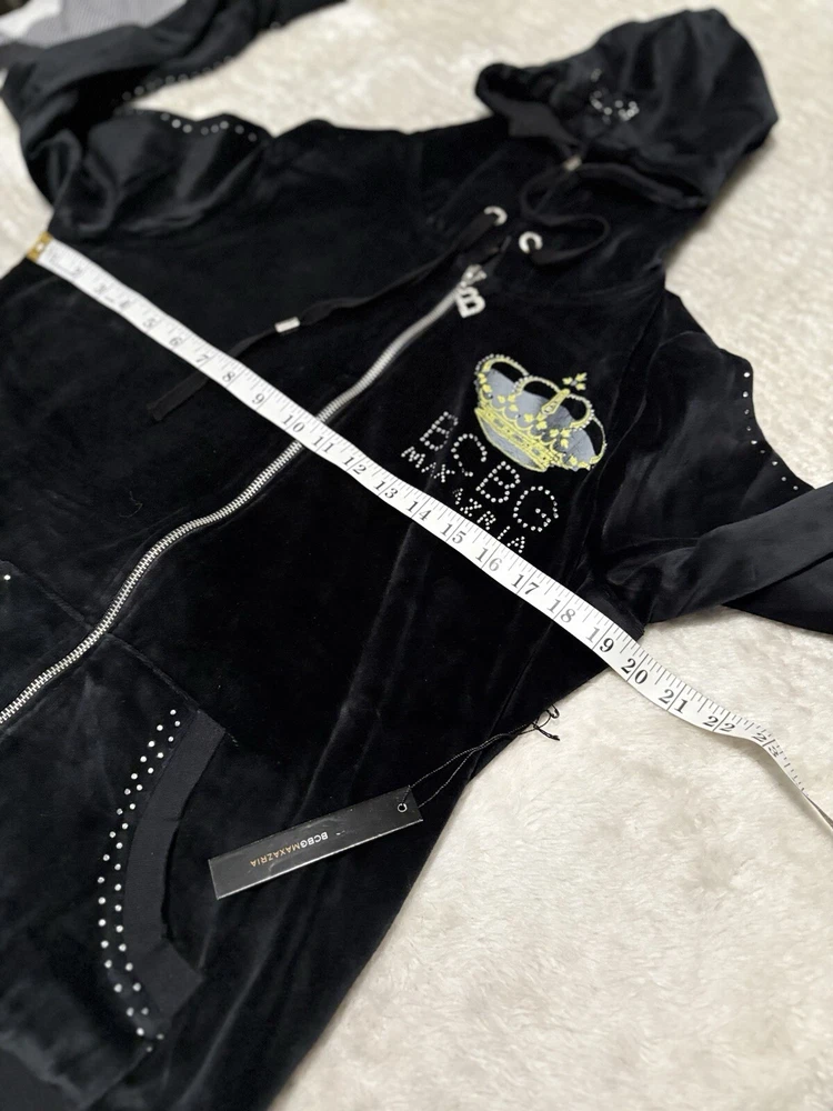 BCBG Max Azria Black Crown Embellish Velour Set Sweat Pants Hoodie Medium Y2K