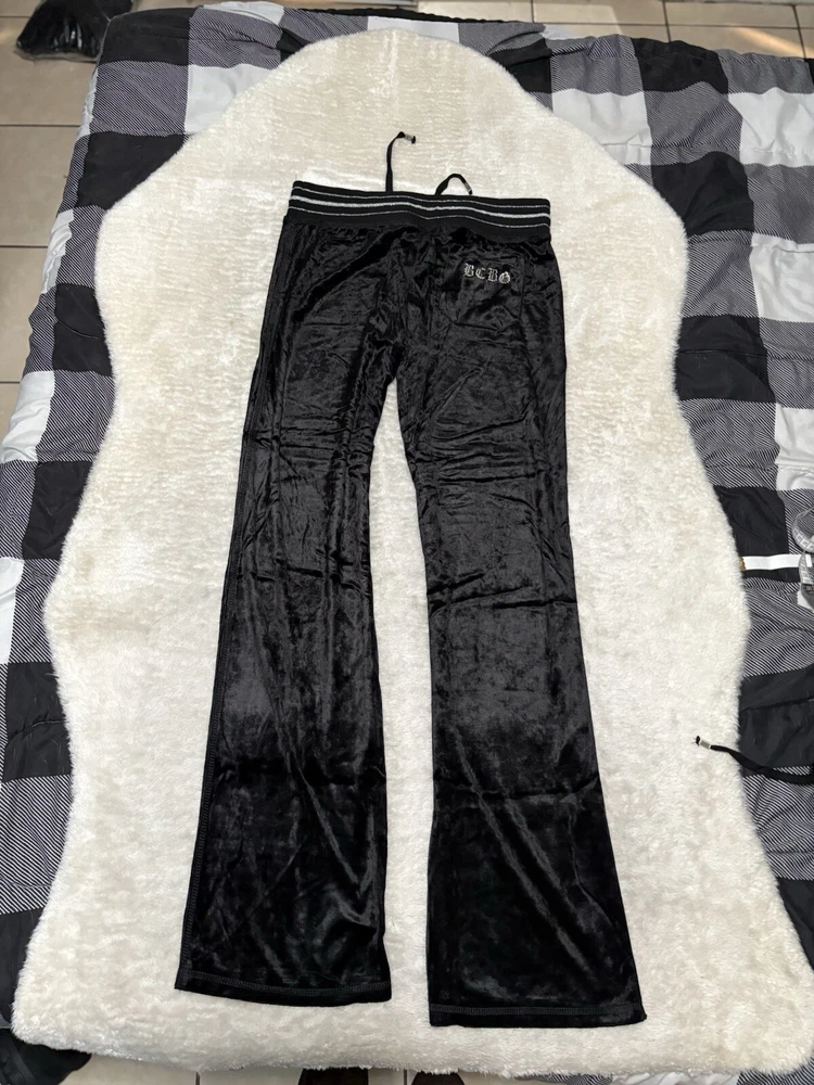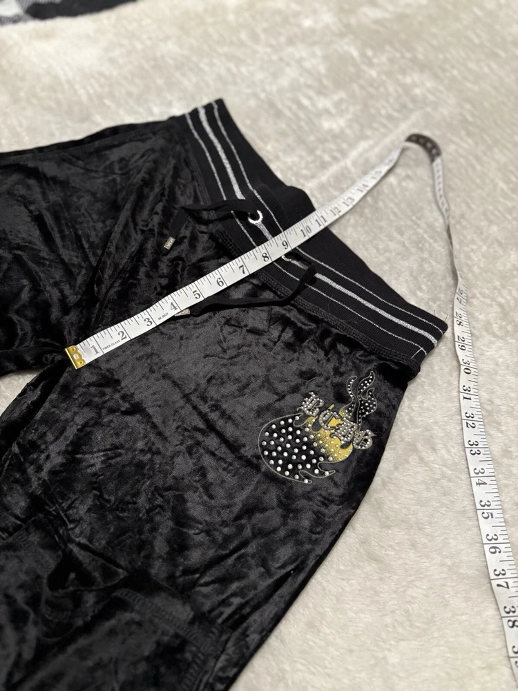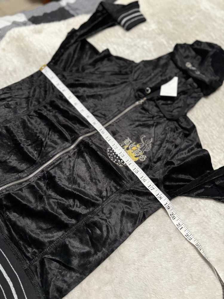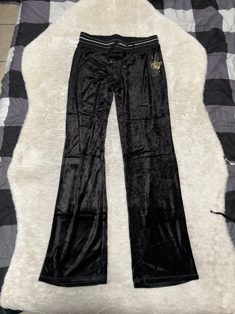 BCBG Max Azria Black Purple Embellish Velour Set Sweat Pants Hoodie Medium Y2K