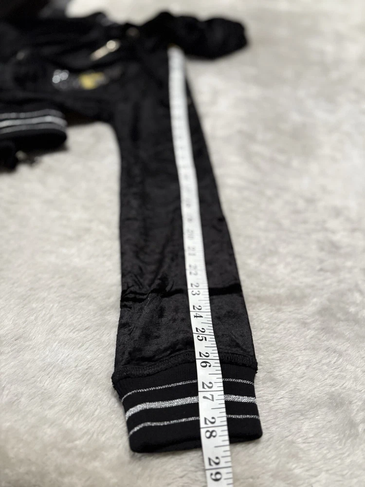 BCBG Max Azria Black Velour Track Suit Set Sz SM Sequin Embellish Pants Hood Y2K