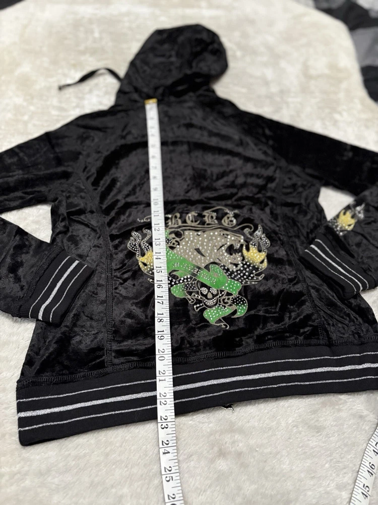Ed Hardy Y2k Tracksuit Set Croped Zip Up Hoodie And Sweatpants Blue/Black/Red