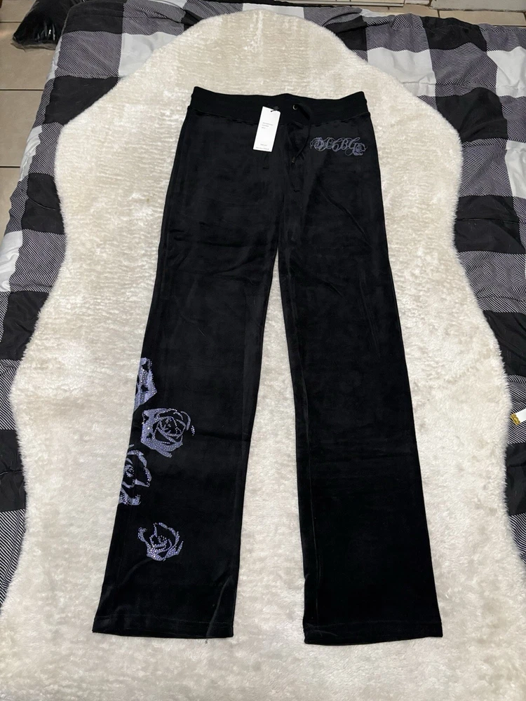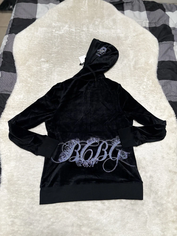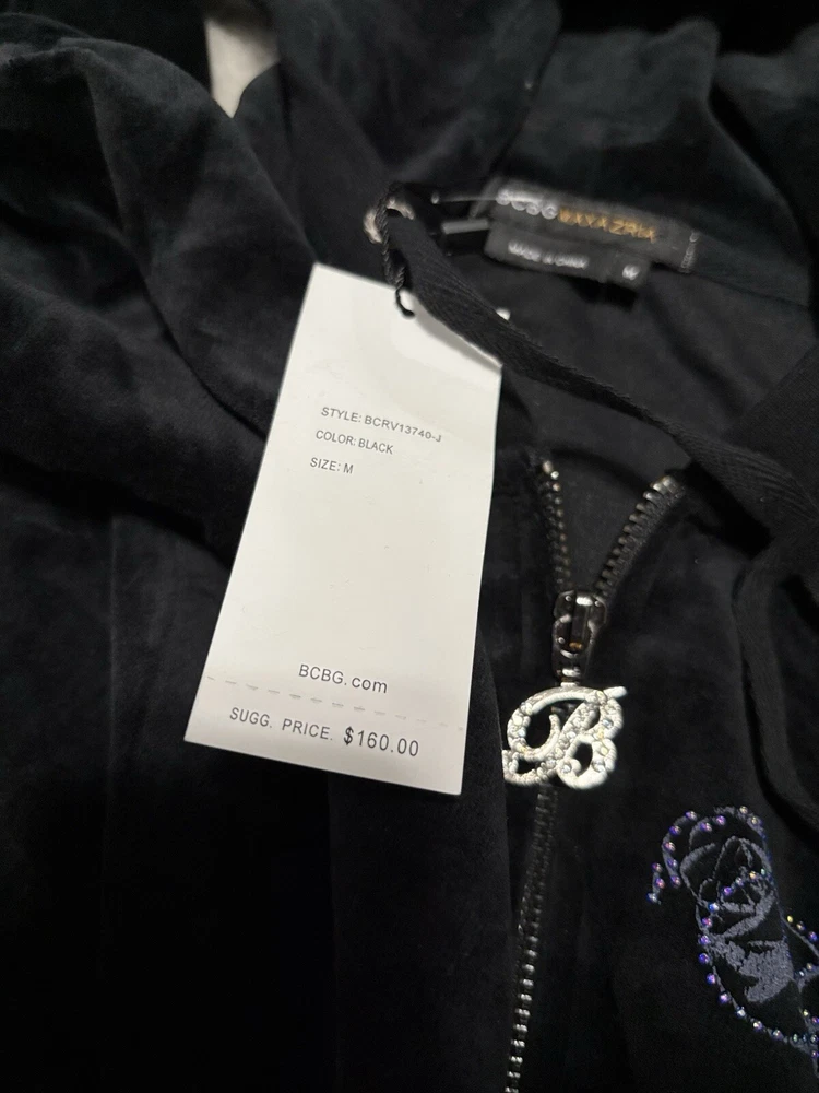BCBG Max Azria Black Purple Embellish Velour Set Sweat Pants Hoodie Medium Y2K
