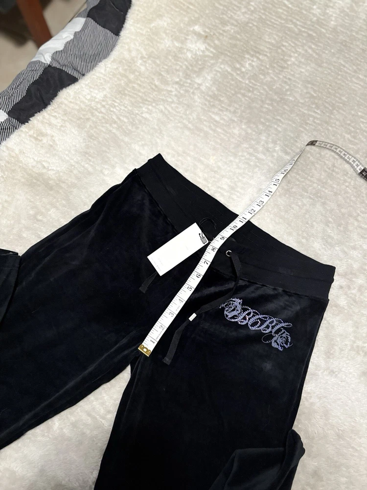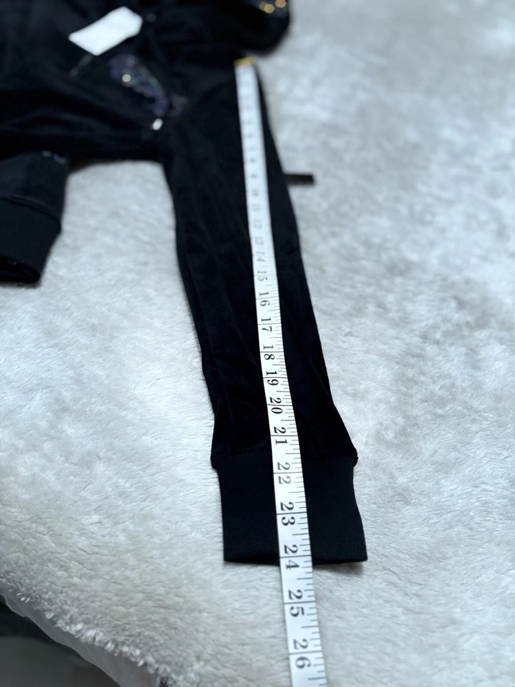 BCBG Max Azria Black Velour Track Suit Set Sz SM Sequin Embellish Pants Hood Y2K