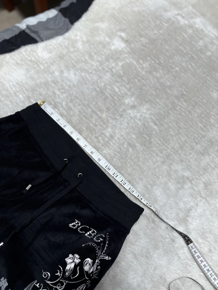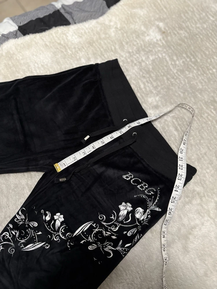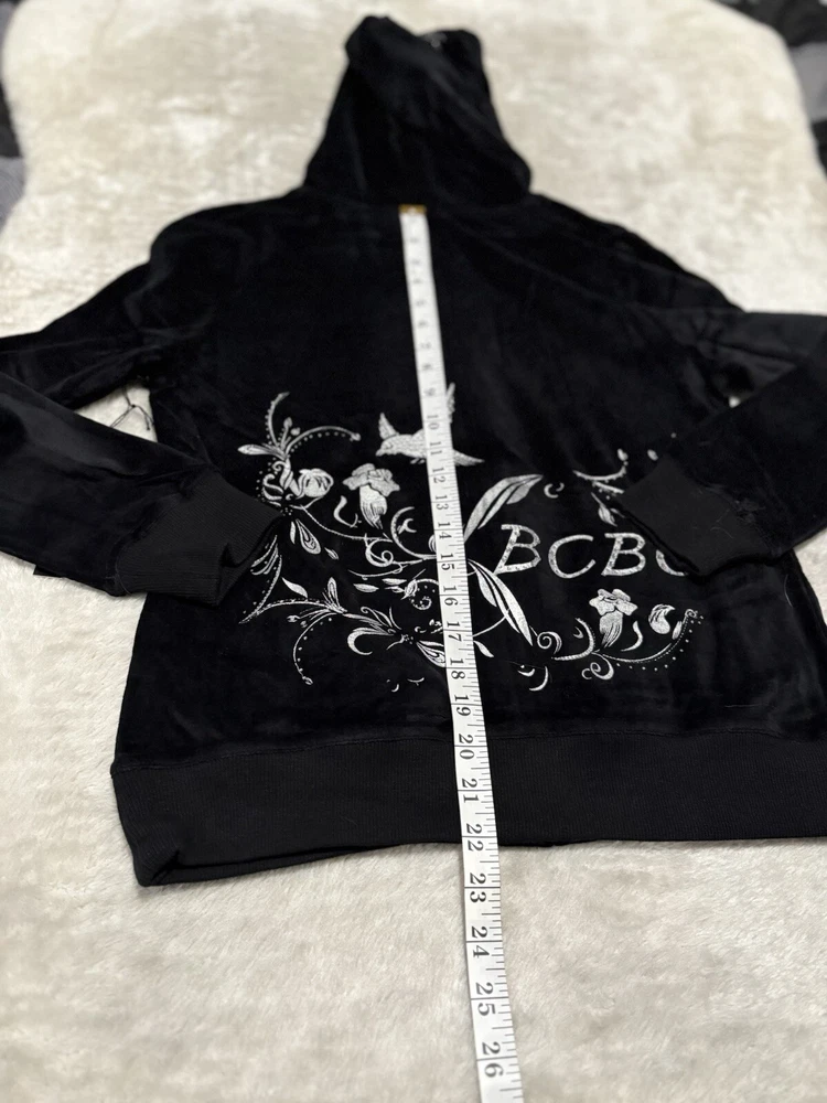 BCBG Max Azria Black Velour Track Suit Set Sz SM Sequin Embellish Pants Hood Y2K