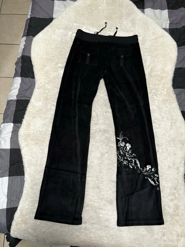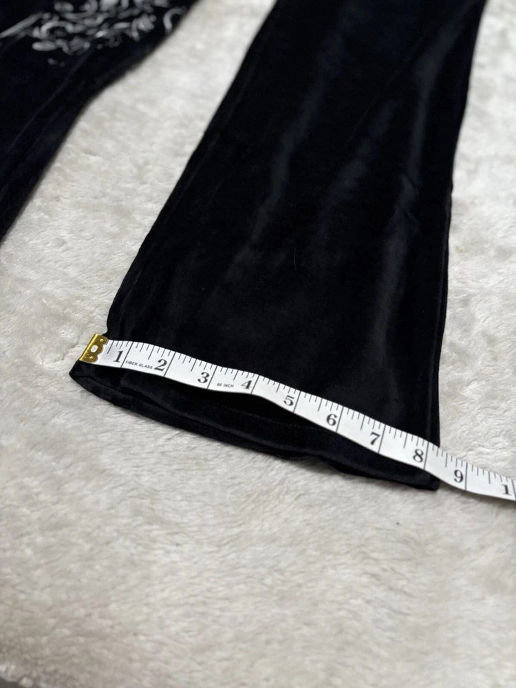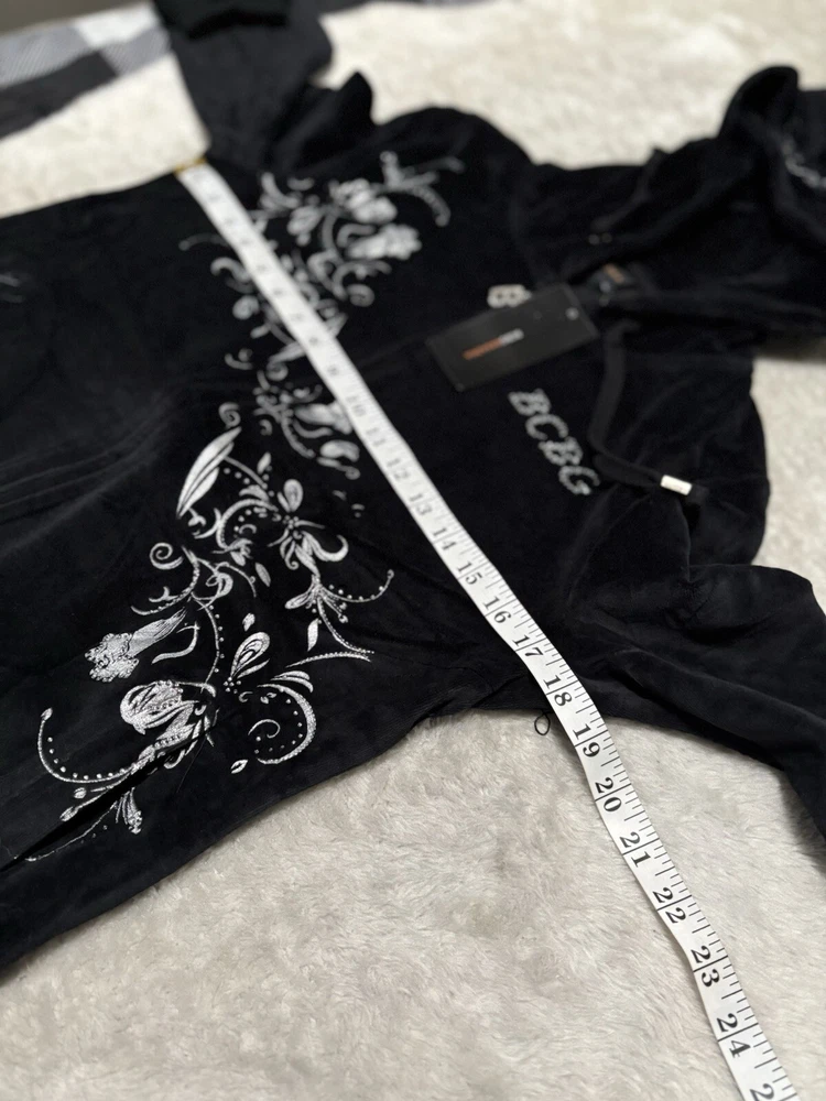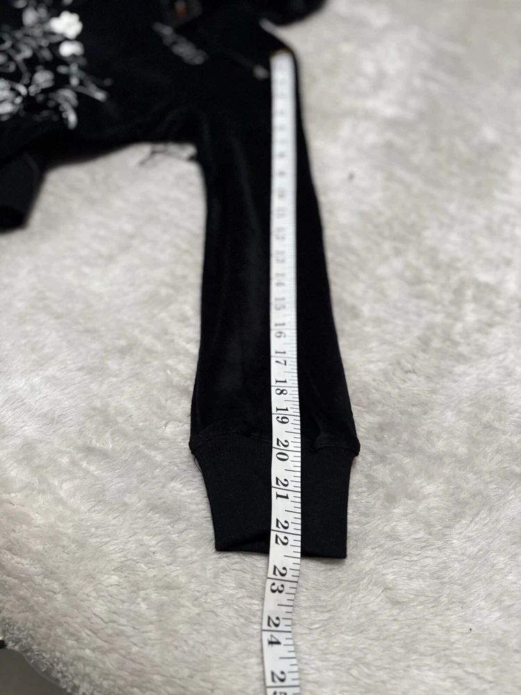 BCBG Max Azria Black Silver Embellish Velour Set Pants Hoodie Medium Bird Floral