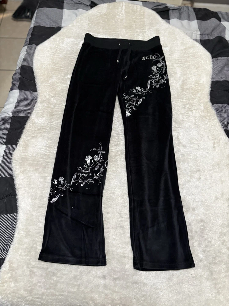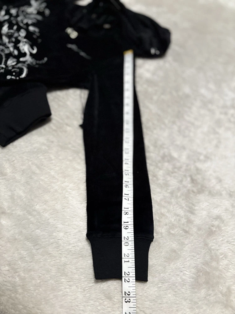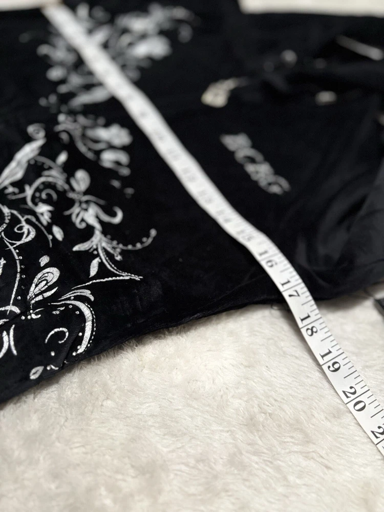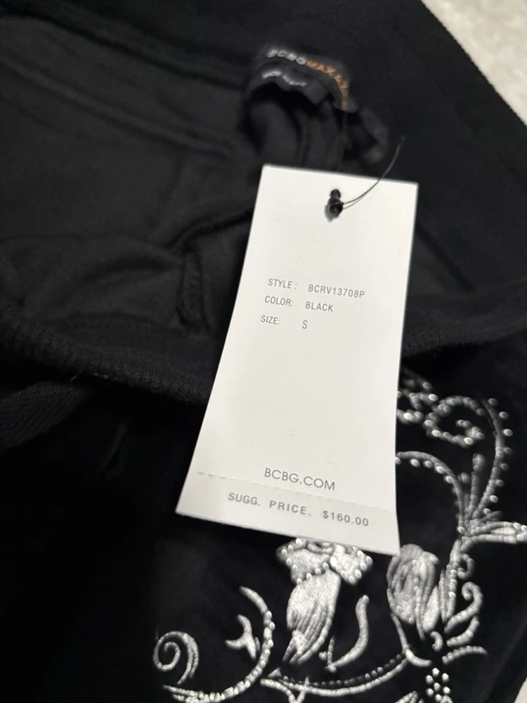 BCBG Max Azria Black Silver Embellish Velour Set Pants Hoodie Small Bird Floral