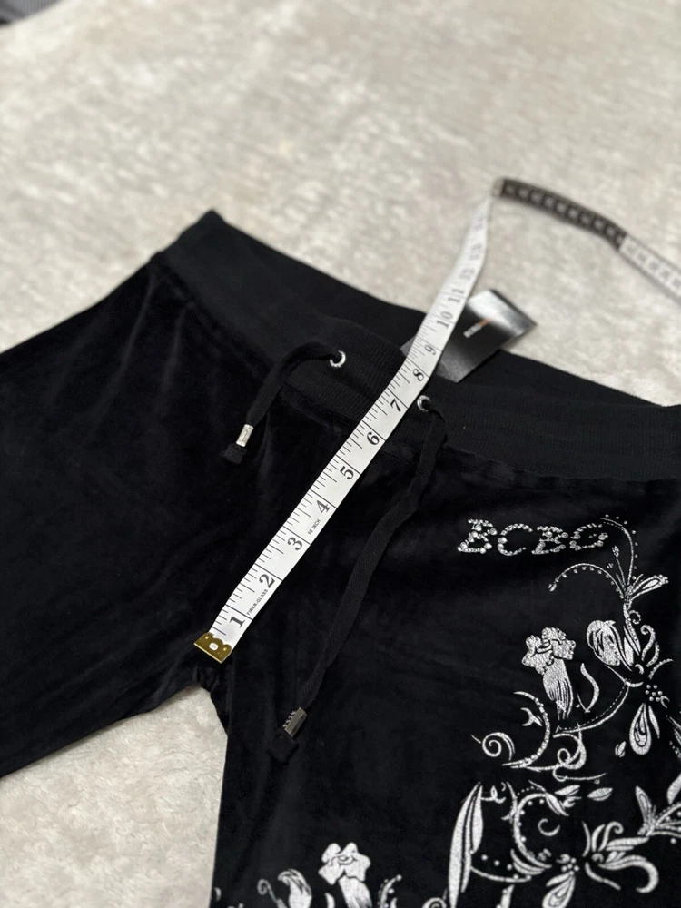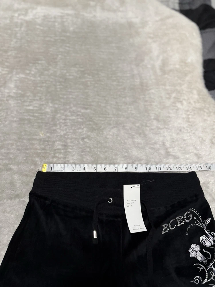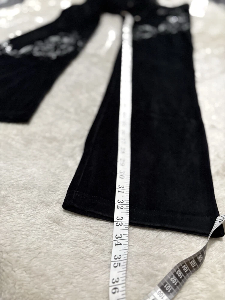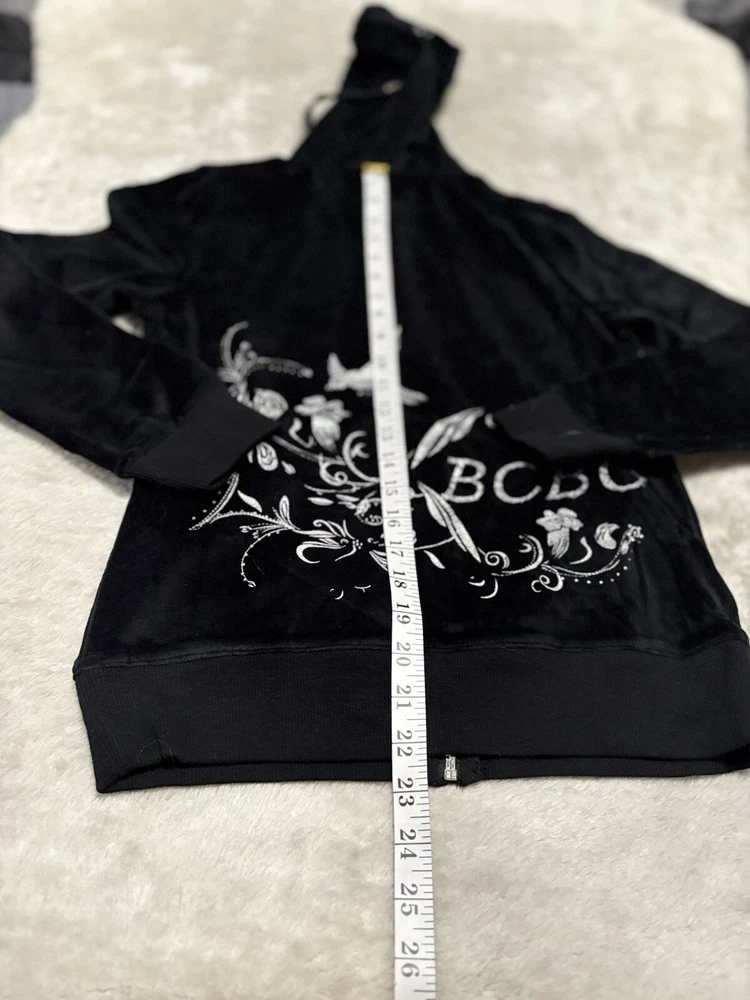 BCBG Max Azria Black Velour Track Suit Set Sz SM Sequin Embellish Pants Hood Y2K