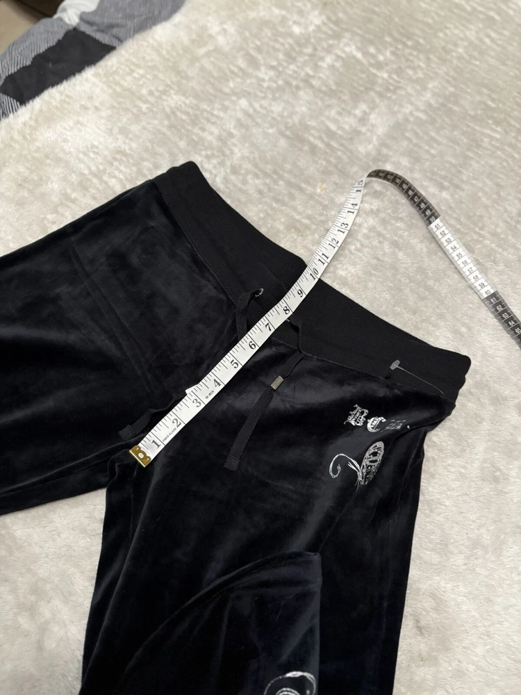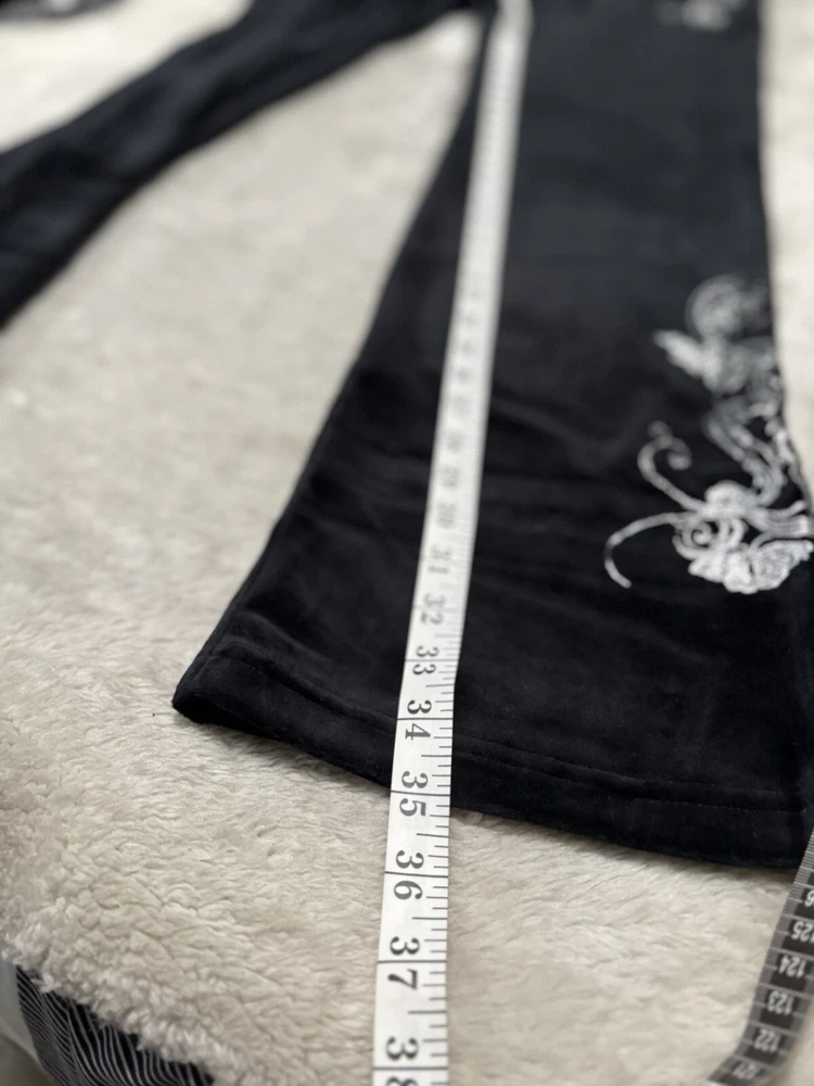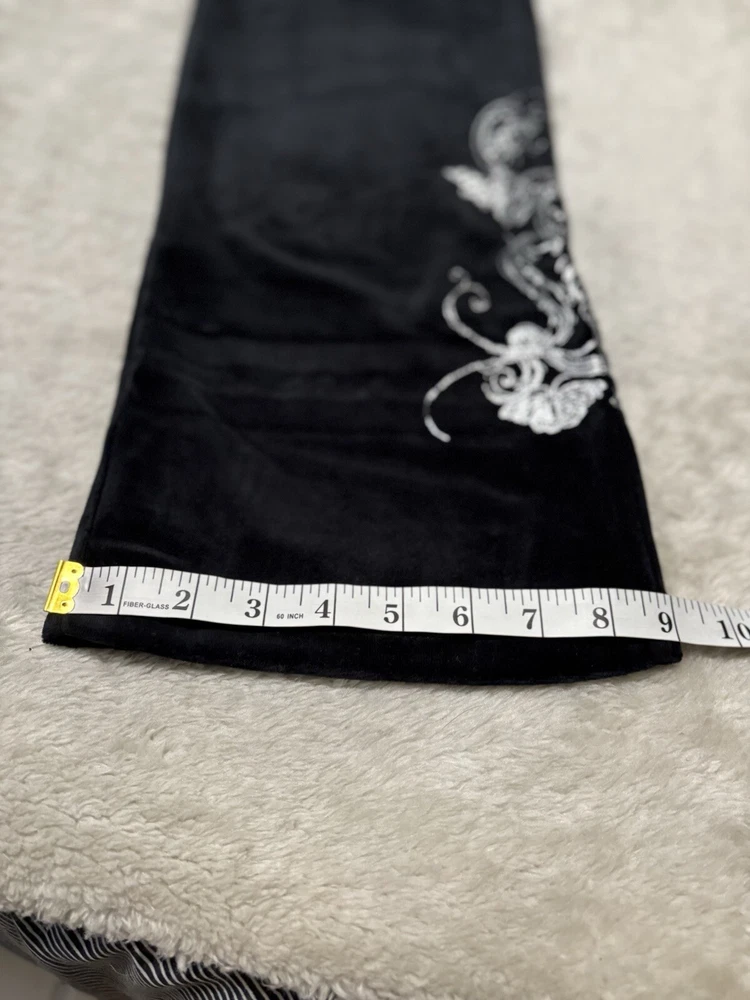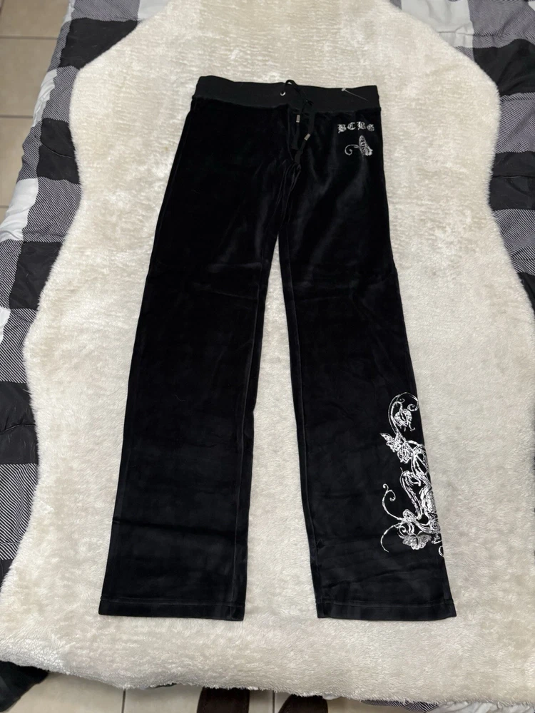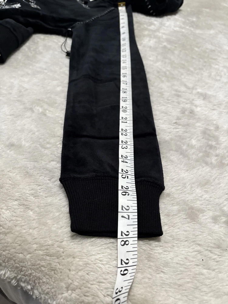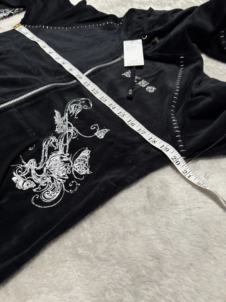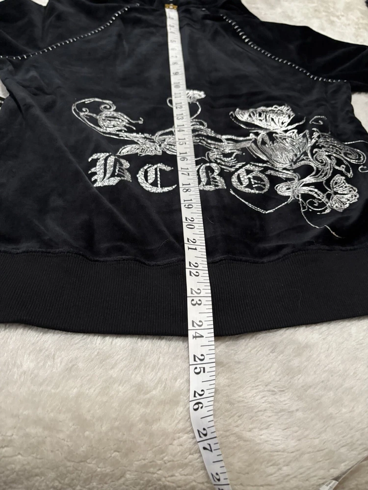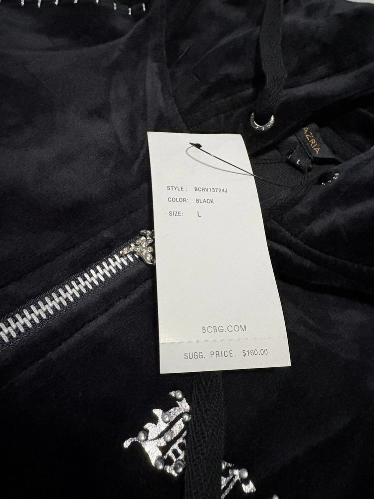 BCBG Max Azria Black Silver Embellish Velour Set Sweat Pants Hoodie Large Y2K