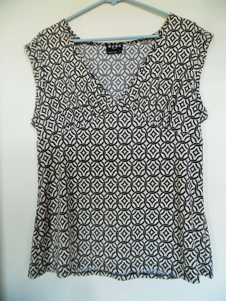 BCBG Paris womens size XL black/beige polyester stretch top Armpit-armpit: 23" Length: 26" AT Combined Shipment: USA : Highest item shipping cost + $3.00. for each subsequent item.Or, you can purchase as many items as you choose and pay the flat rate of $18.75 for your Priority Mail Large Flat Rate Box which covers your entire order. Please read the disclaimer below. INTERNATIONAL SHIPMENTS: Highest item shipping cost + $5. for each subsequent item. Please read the disclaimer below. DISCLAIMER on Shipping Costs: Our intention is to keep our shipping costs as low as possible. However, depending on the item purchased (weight) and the destination, shipping rates can vary; especially 30 Day?s No Questions Asked Returns Policy: Your satisfaction is very important to us. We have a 30 days NO QUESTIONS ASKED returns policy. The item must be returned in the condition in which it was purchased. If there are labels/tags they should not be removed. If they are, the item will be sent back to you. ANY SHIPPING COSTS WILL NOT BE REFUNDED. BOTH WAYS, receiving and any returns. Please contact us for the return shipping address and authorization. ALL COMMUNICATIONS MUST BE IN WRITING & TAKE PLACE THROUGH THE EBAY SITE ONLY. No private direct email correspondence. A customer care rep. will respond to you within 24 hrs (Mon-Fri). Once we have received the merchandise and inspected it, please allow 72 hours for a refund to be issued. NO See my other listings for more great items! We accept PAYPAL. Also we have a virtual terminal with PayPal through which we can accept Visa, MasterCard, Amex, and Discover. If you do not have a PayPal account, it takes virtually minutes to open International shipments: PLEASE DO NOT PAY until we determine your shipping costs. Most of our items also have an International Flat-Rate. Although, if due to the destination or the weight we are unable to honor the rate mentioned in the item?s listing, we will cancel your order and leave you positive feedback. Usually we use the US Postal Service. The best international rate for an international shipment is First Class (up to 4 lbs.)If your items exceed 4 lbs. we may pack them into two separate packages (and notify you of this).You still are eligible to take advantage of the combined shipping rates, even if we have packed them into two separate packages. The fees for packaging, shipping, insurance, Customs Duty Charges on international shipments are all the responsibility of the Buyer and are not included in the purchase price. If the item(s) are gifts, we could indicate ?GIFT? on the customs form so you would avoid paying more on duty. Add a map to your own listings. FREE Trial!