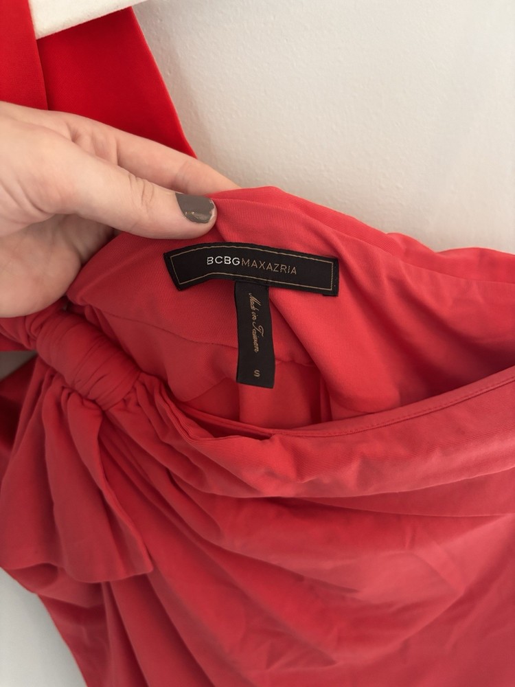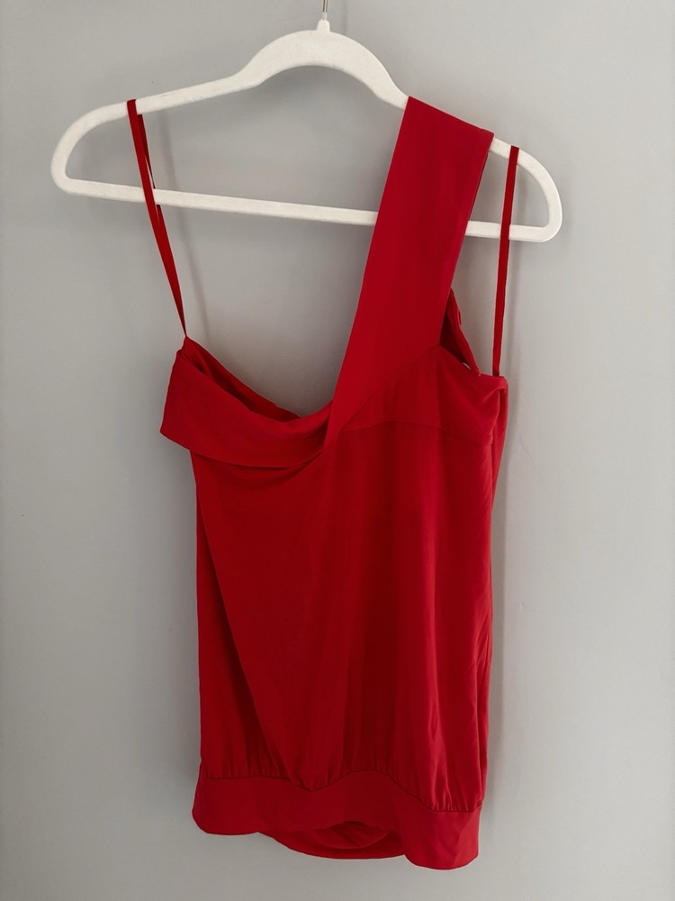 BCBGMAXAZRIA Red One Shoulder Bow Accent Sleeveless Blouse for Women Size S
