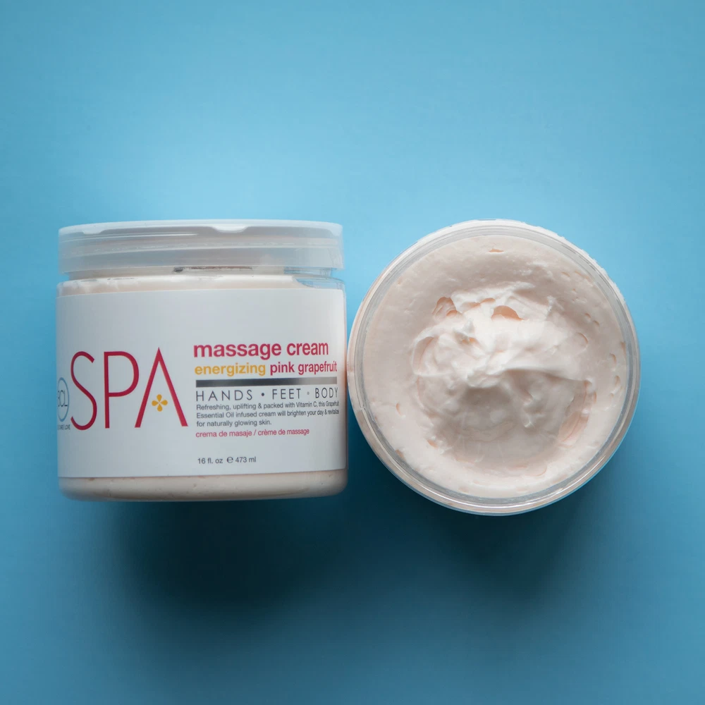 Refreshing, uplifting & packed with Vitamin C, this Grapefruit Essential Oil infused cream will brighten your day & revitalize_x0003_ for naturally glowing skin. Perfect as a hydrator or massage medium, this cream leaves skin deeply moisturized and radiant. Formulated with Certified Organic ingredients such as Grapefruit Oil, Argan Oil, Olive Oil, Jojoba Oil, Kelp Extract and Lemon Fruit Extract, BCL Spa® massage cream is loaded with antioxidants and vitamins for healthy skin. Use as the final step in one of our signature organic treatments or alone as a skin hydrator for hands, feet and body. Home Contact Us BCL SPA Massage Cream Energizing Pink Grapefruit, 16 oz. Brand: BCL Spa Manufacturer SKU: SPA58016 Condition: NEW UPC: 713708580162 Color Name: Color Effect: Color Family: Description Refreshing, uplifting & packed with Vitamin C, this Grapefruit Essential Oil infused cream will brighten your day & revitalize_x0003_ for naturally glowing skin. Perfect as a hydrator or massage medium, this cream leaves skin deeply moisturized and radiant. Formulated with Certified Organic ingredients such as Grapefruit Oil, Argan Oil, Olive Oil, Jojoba Oil, Kelp Extract and Lemon Fruit Extract, BCL Spa® massage cream is loaded with antioxidants and vitamins for healthy skin. Use as the final step in one of our signature organic treatments or alone as a skin hydrator for hands, feet and body.