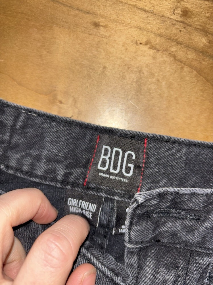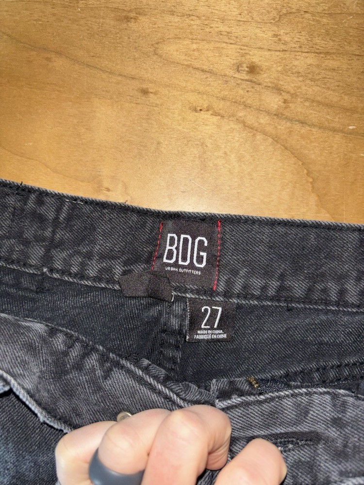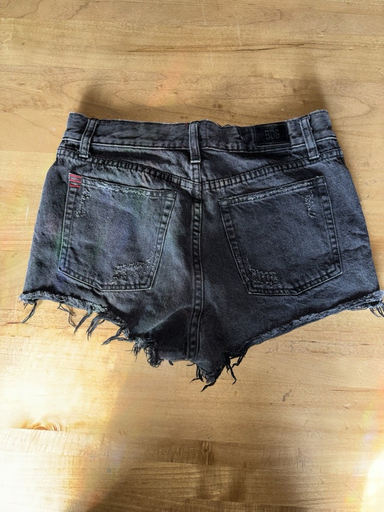 The BDG Urban Outfitters Shorts are a stylish pair of women's high-rise denim shorts in a versatile black color. Made from 100% cotton denim, these shorts feature a zip closure, flat front, and button accents. Perfect for casual occasions, these cut-off shorts have a regular fit and come in a size 27 with a 27-inch waist. The high-rise design adds a trendy touch, while the pockets provide added functionality. Ideal for summer and spring, these machine-washable shorts are a must-have for any fashion-forward woman.
