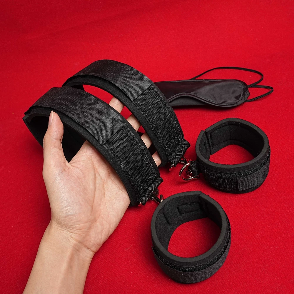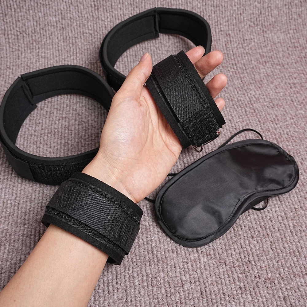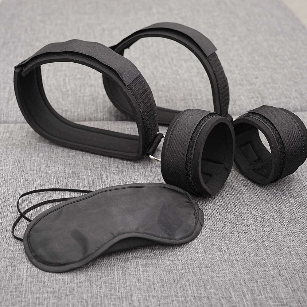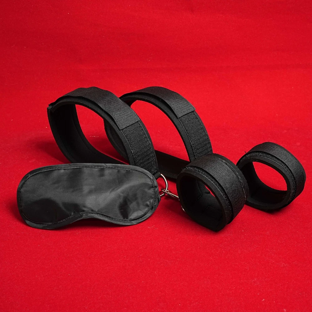 BDSM Bed Restraint Kit Body Harness Straps Handcuffs Anklecuffs Blindfold Slave