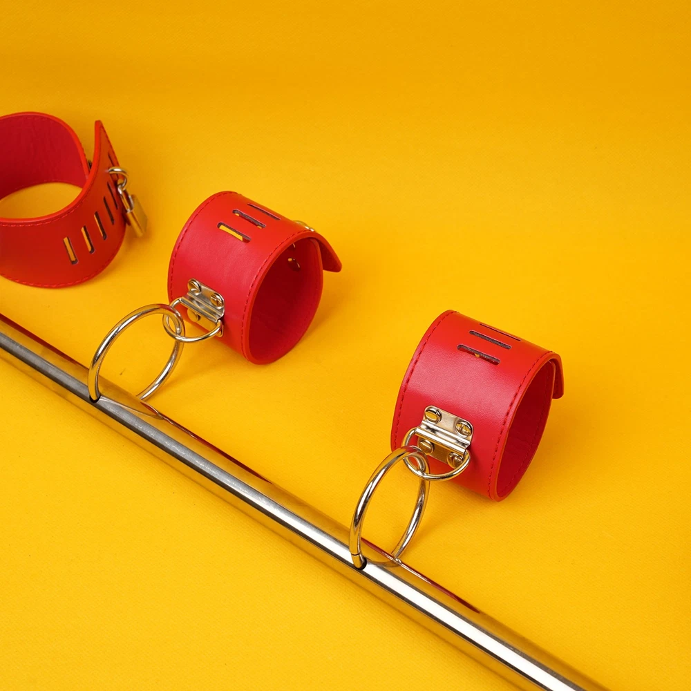 $ 5.75Metal Open Leg Bar PU Leather Handcuffs Ankle Cuffs Restraints Bondage Set BDSM